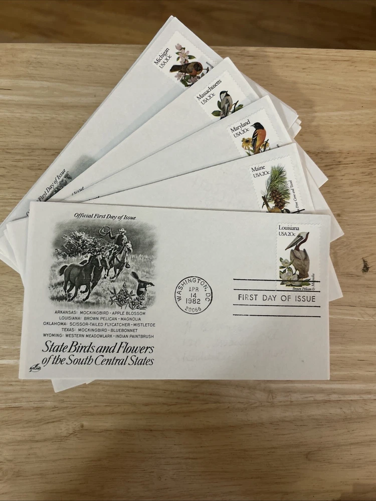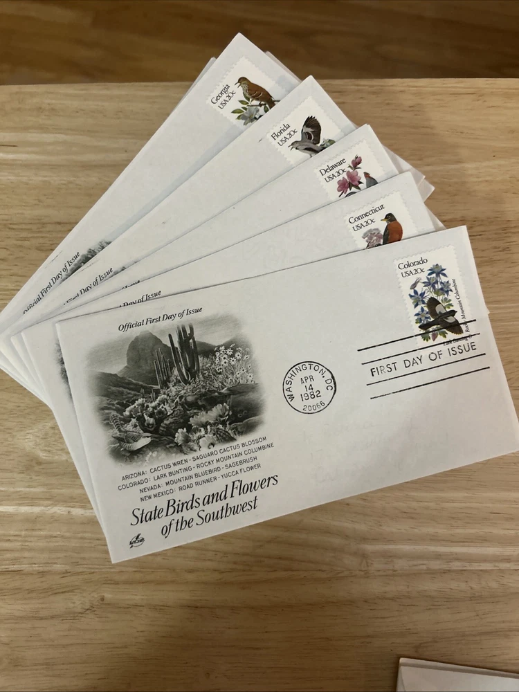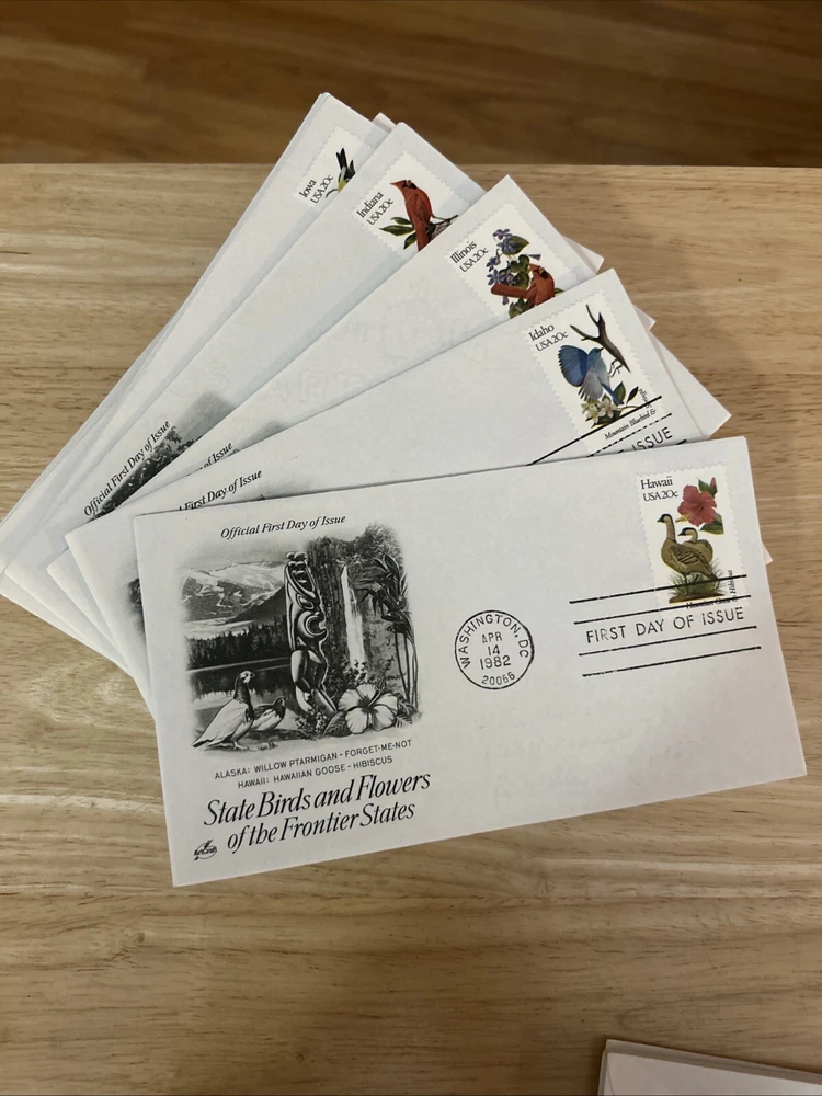 This amazing collection of 1982 Birds and Flowers US 50 States First Day Cover Stamps is a must-have for any stamp collector or enthusiast. With a stunning array of colorful stamps featuring beautiful birds and flowers from all over the United States, this collection is sure to impress. The stamps are from the year 1982 and were issued to commemorate the bicentennial of the United States. The First Day of Issue cancellation type adds an extra level of uniqueness to this already remarkable collection. Don't miss your chance to own a piece of history with this incredible collection of stamps.