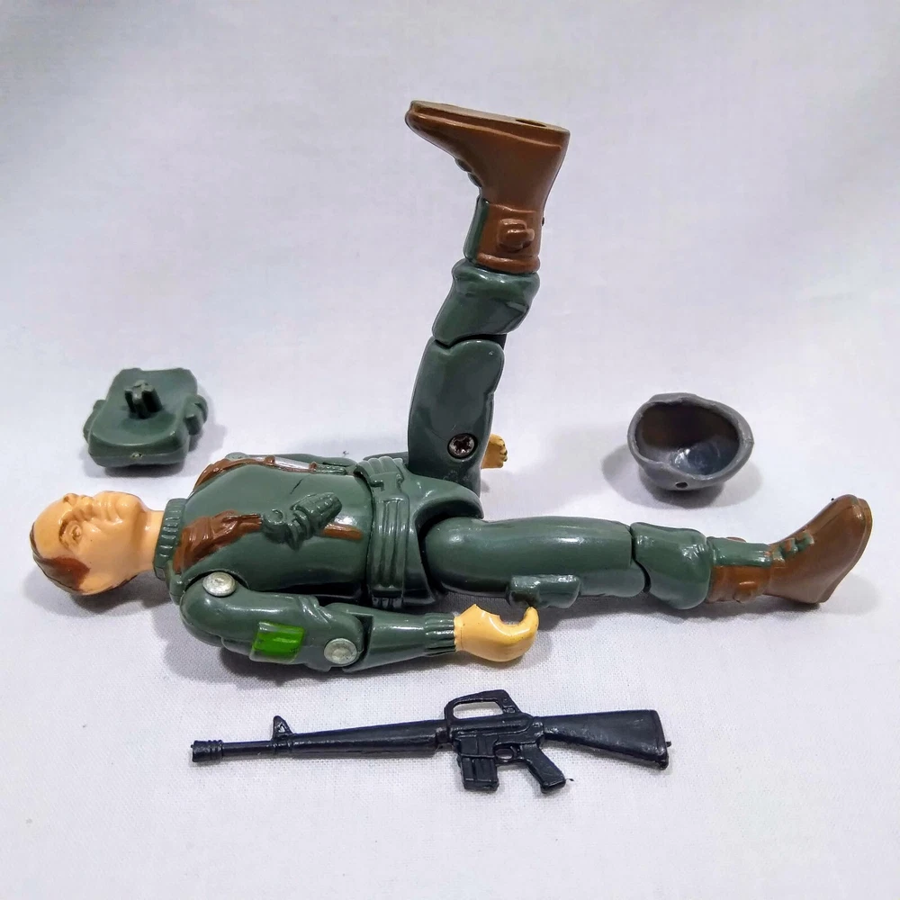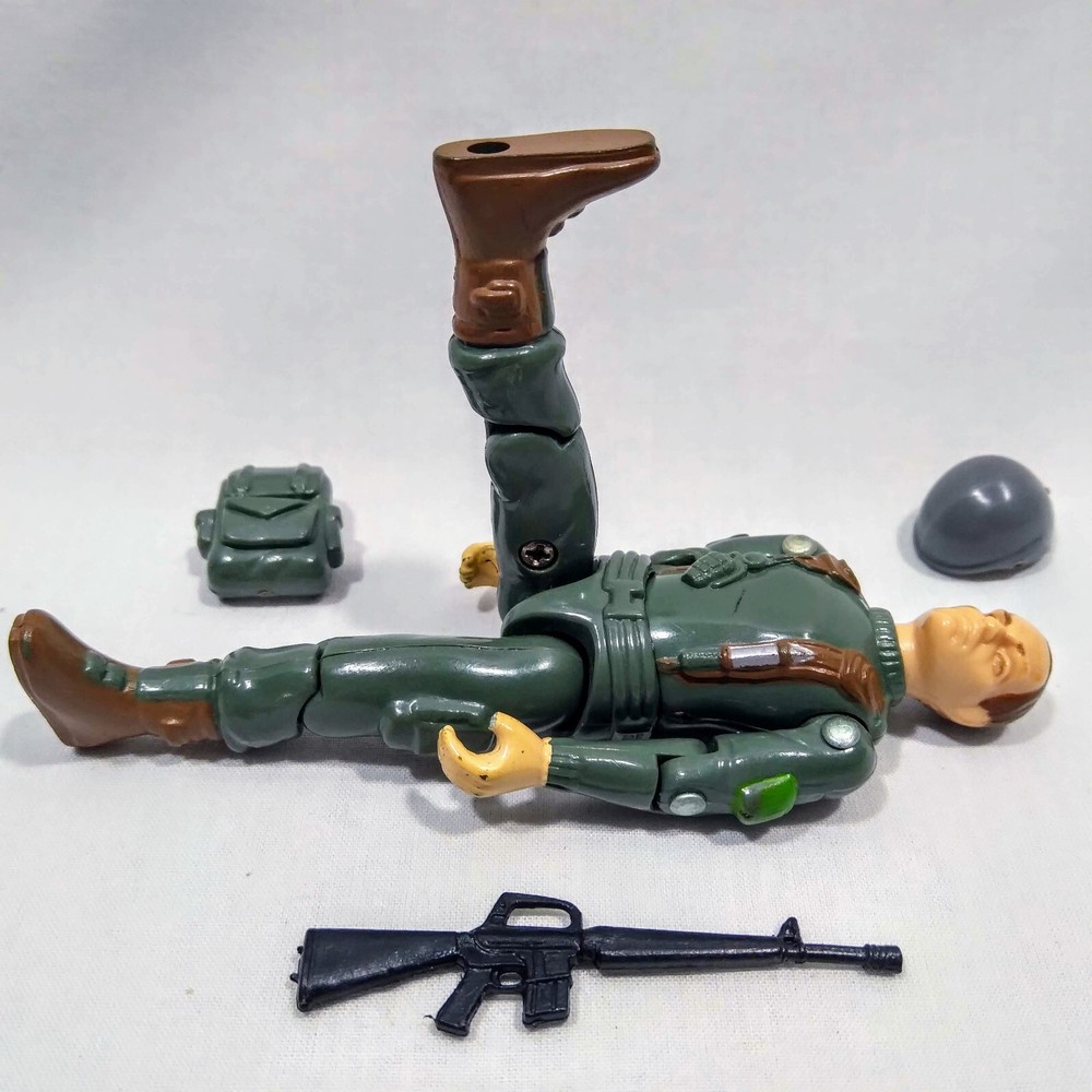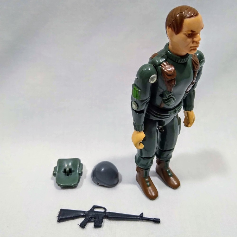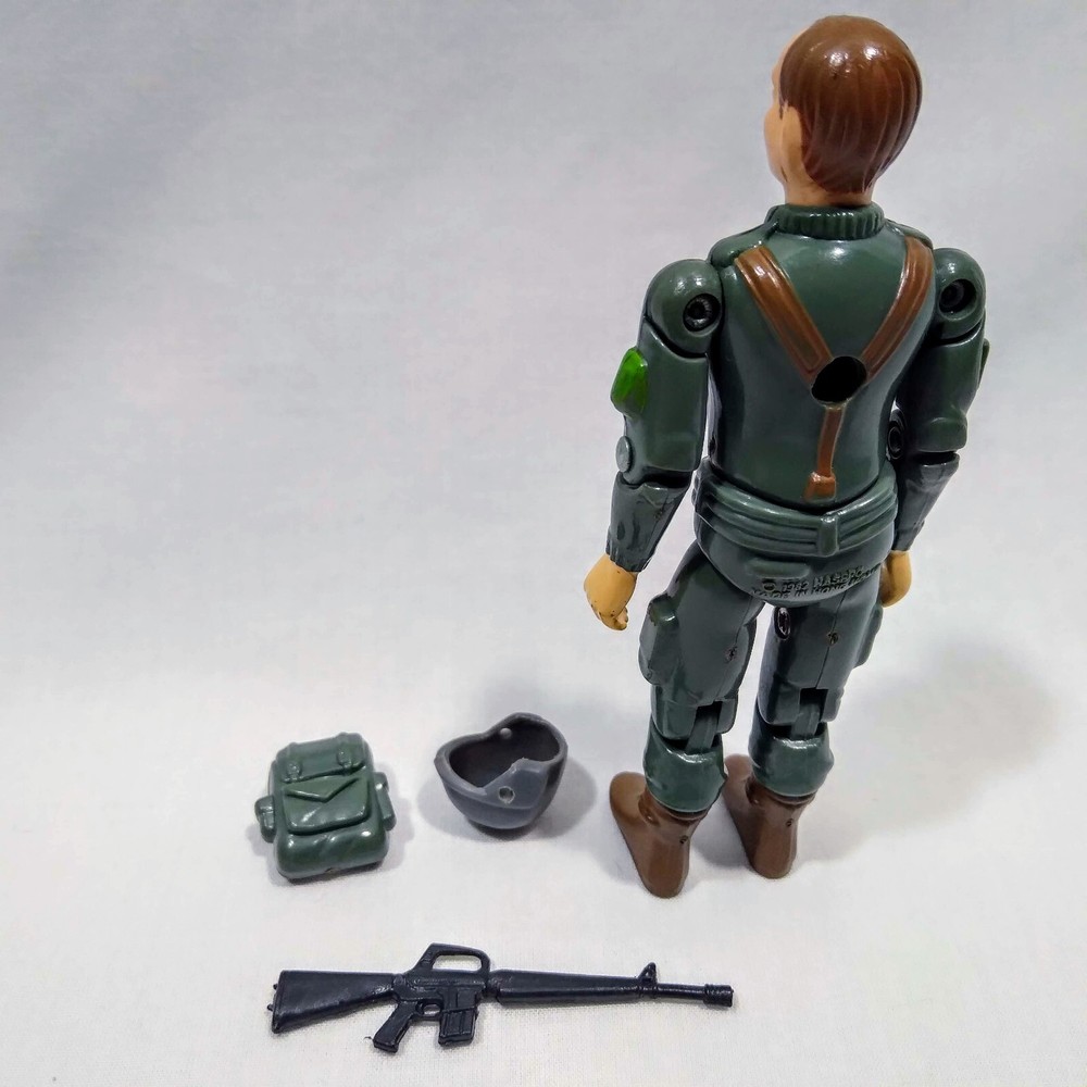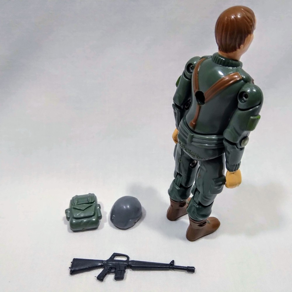 GI Joe 1982 Grunt v1 Straight Arm w/ Rifle, Helmet & Backpack *Broken Thumbs* Broken / missing thumbs. Helmet wrong color.