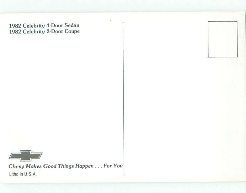 1982 Postcard Ad CHEVROLET CELEBRITY 2 DOOR COUPE & 4 DOOR SEDAN CARS AC6181@