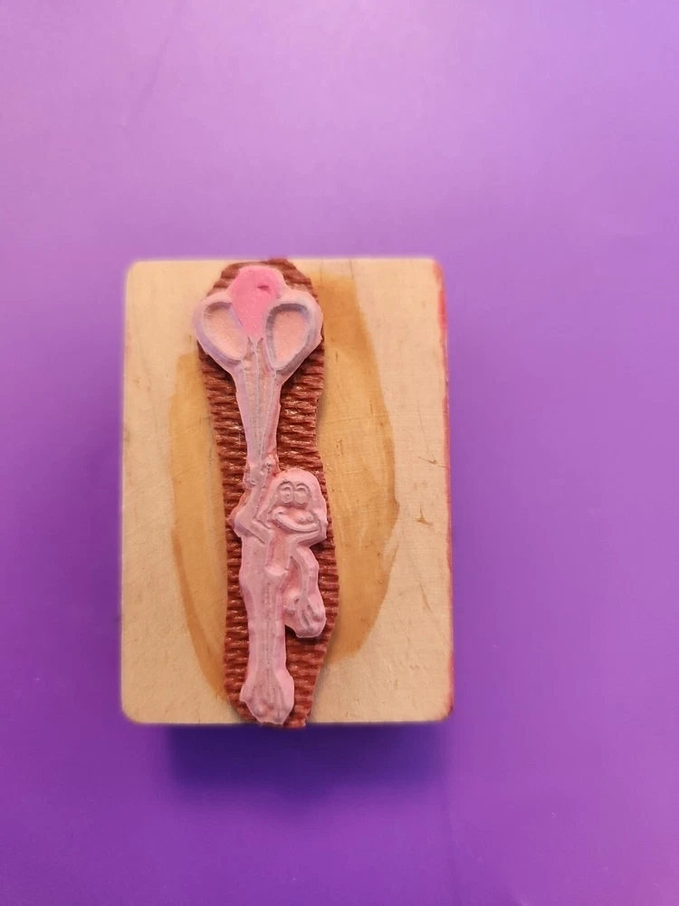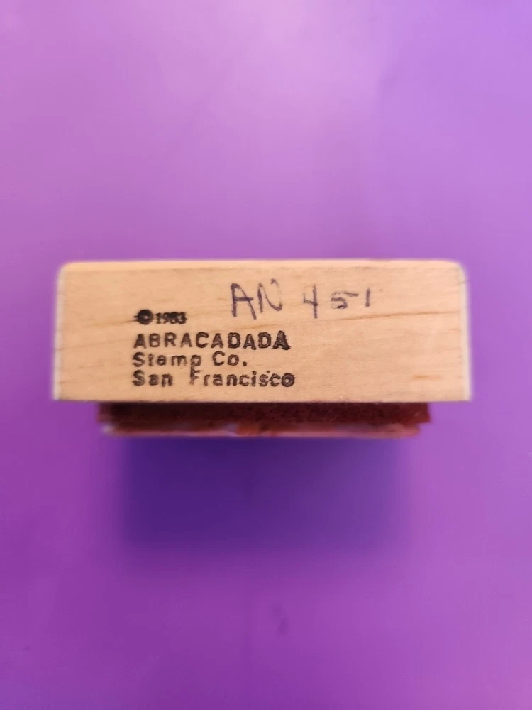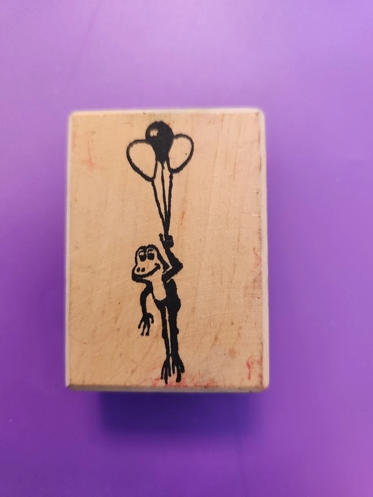 Add a touch of vintage charm to your stamp collection with this rare Abracadada Frog with Balloons rubber stamp. Crafted in 1983, this mounted stamp boasts a whimsical heart design and is made from high-quality rubber material for long-lasting use. Perfect for those who love toys, dolls, and bears, this stamp is a must-have for any crafter's collection. Made in the United States, this stamp sits on a sturdy wood base and is ideal for adding a touch of creative flair to your crafts. Sold as is, sorry no returns. See photos for condition. See my other stamps for sale! Shipping in poly-mailer or local pickup. Stamp measures: 2" x 0.5" Wood base measures .75" x 1.75" x 2.25"