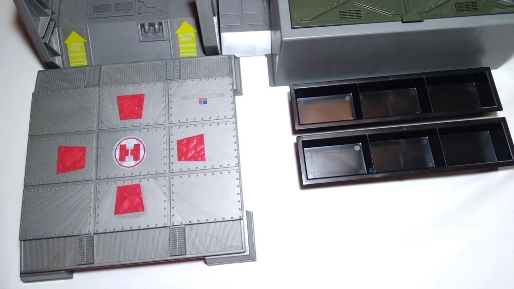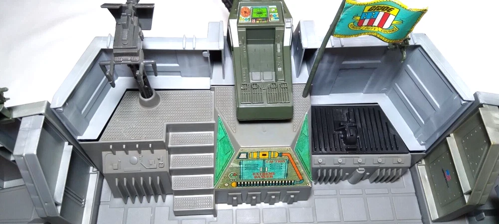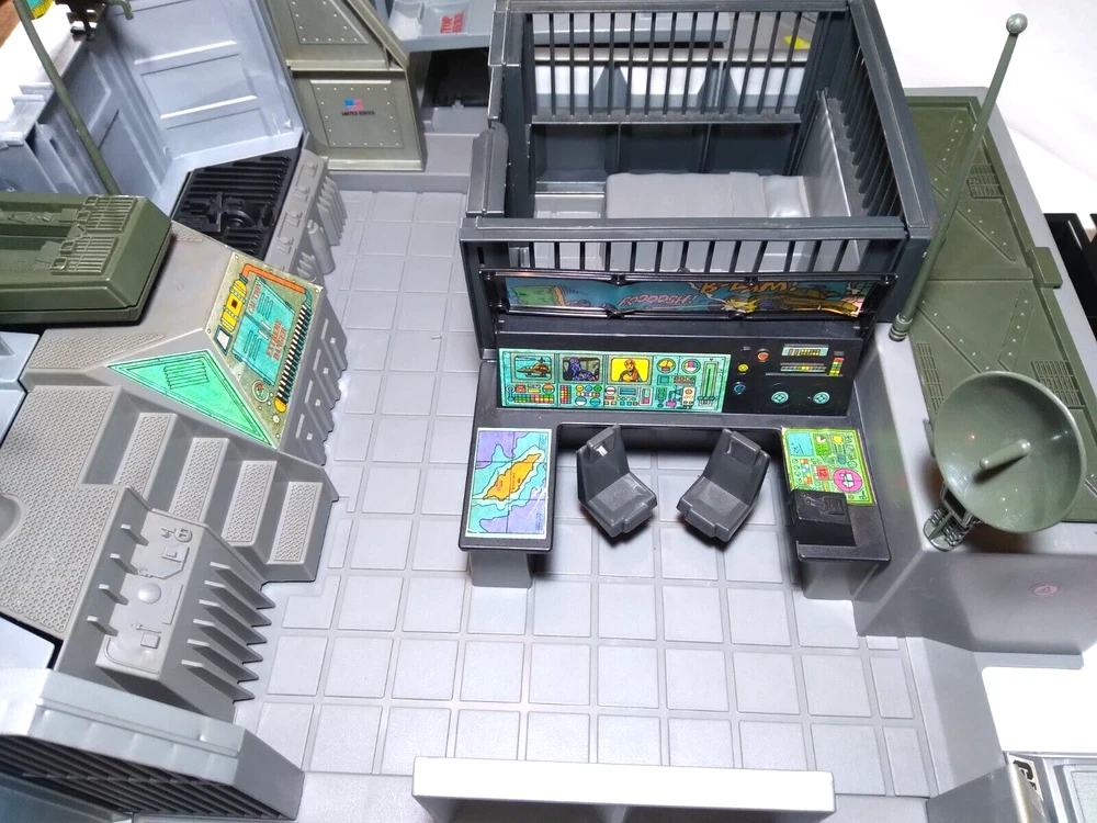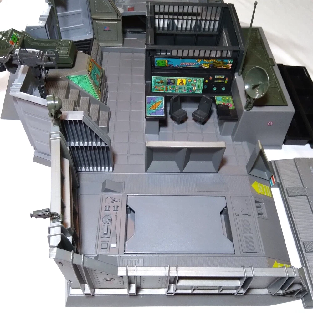 All original parts and stickers. No reproductions. Please feel free to contact me with any questions. Included parts: 4x Main Platforms (Base, Supply Depot, Motor Pool, Helipad) 10x Exterior Walls (No broken tabs) 6x Stockade Walls / Door (Several broken tabs and glue residue) 1x Mechanics Ramp (Complete and working) 1x Supply Depot Cover 1x Console 2x Console Chairs 1x Turret platform 1x Turret 1x Laser Cannon 2x Machine Gun 1x Camera 2x Search Lights 1x Antenna 1x Radar 1x Flag 2x Storage trays 1x Storage cover 1x Turbine Cover Missing Parts: 1x Camera