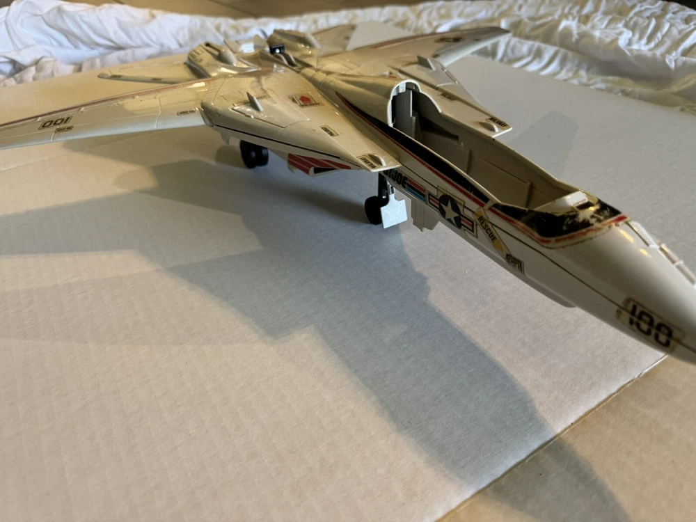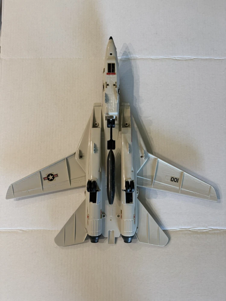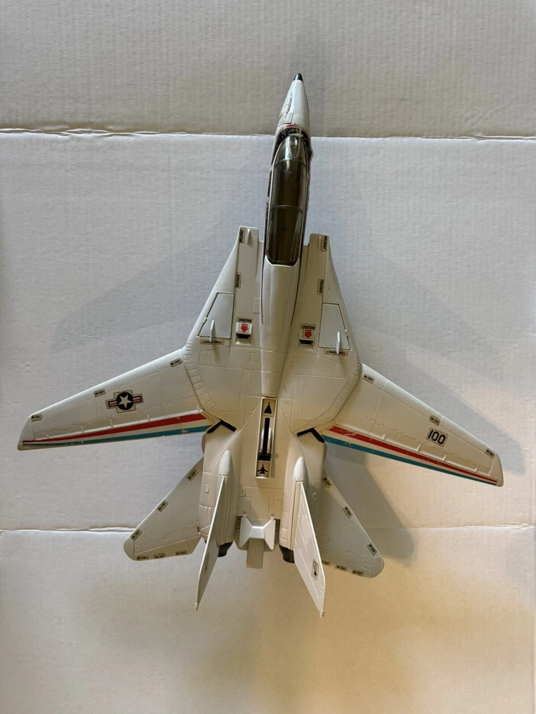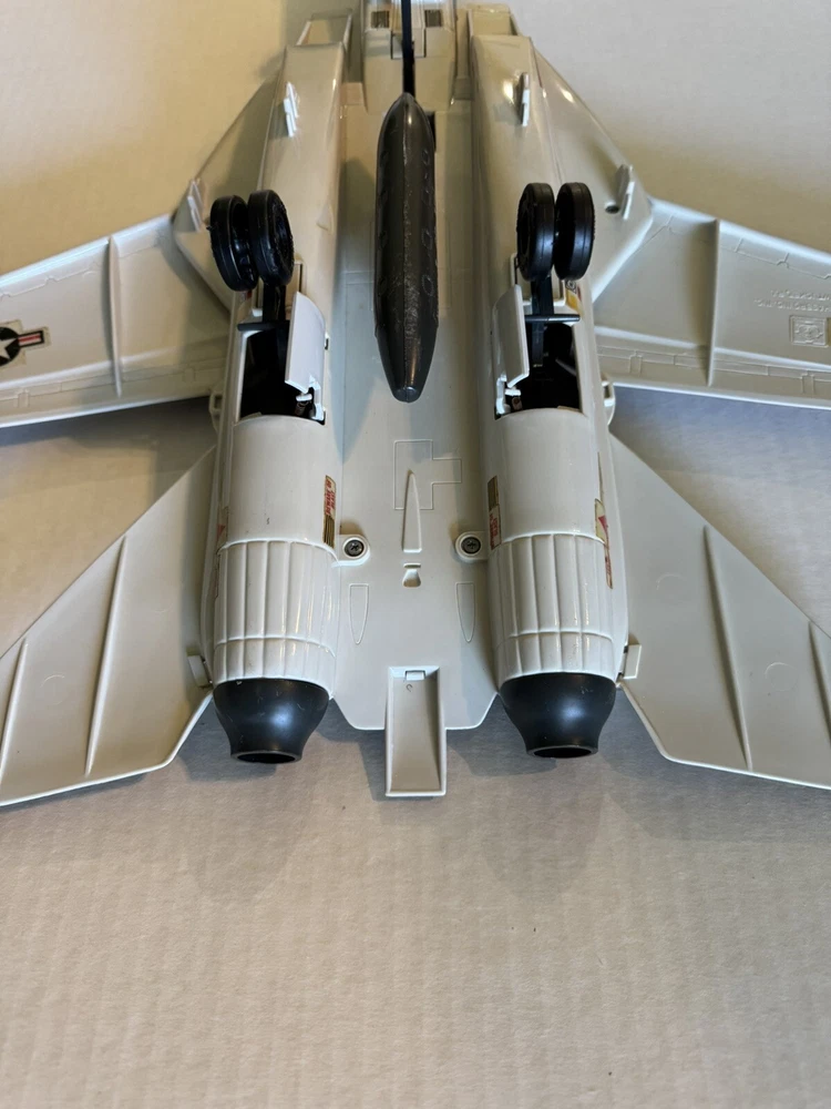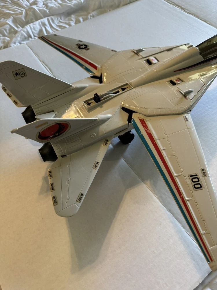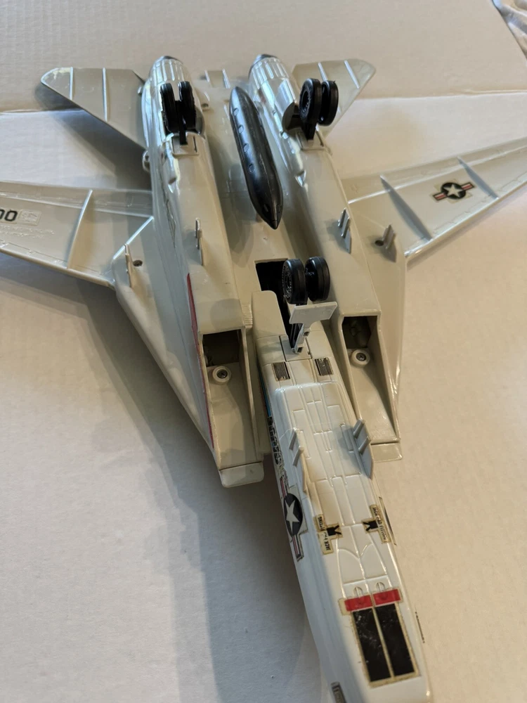 The GI Joe Combat Jet Skystriker (XP-14F) with Ace from 1983 is a vintage action figure toy manufactured by Hasbro. Ace is in nice condition complete with helmet and includes the card. The Skystriker Jet has missing parts and is not complete and has some wear in the stickers.
