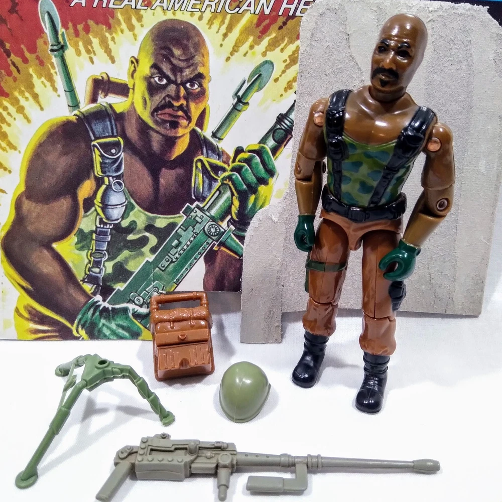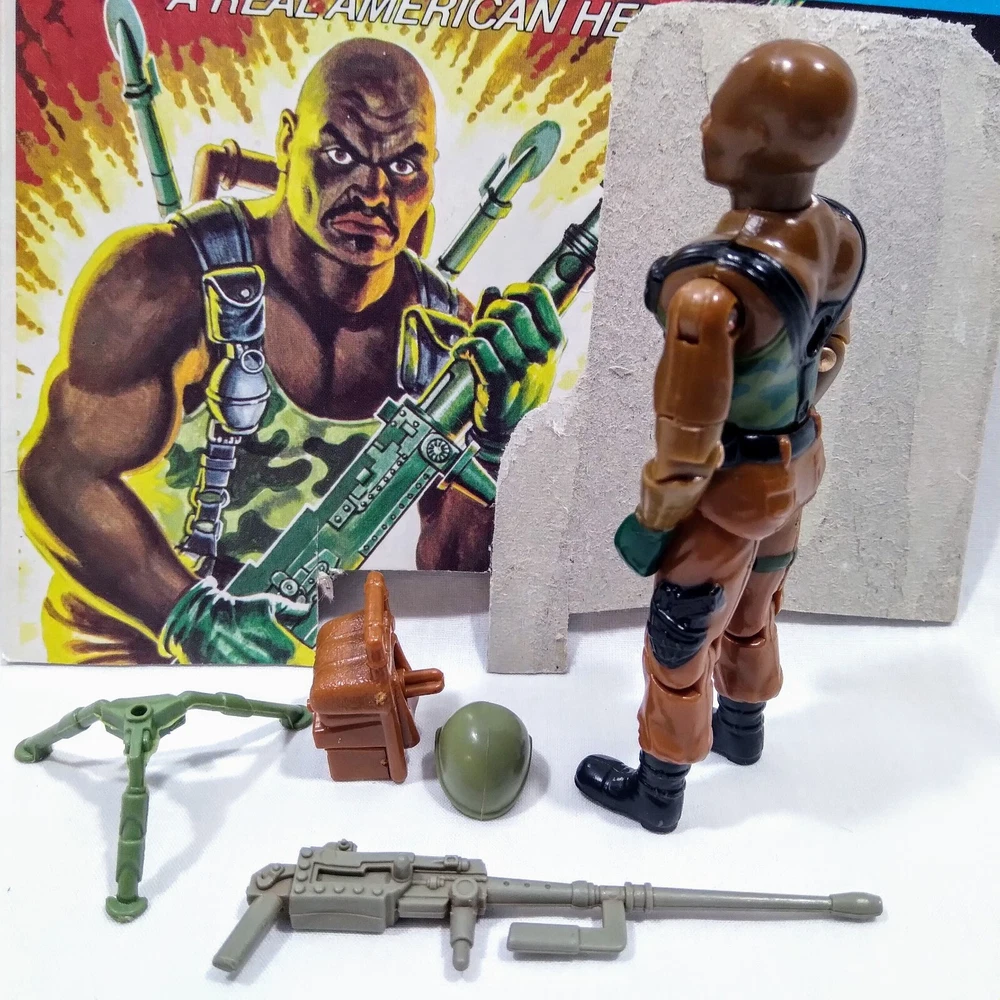 Home1984 GI Joe Roadblock v1 Complete w/ Gun Tripod Ammo Box Backpack Helmet & Card