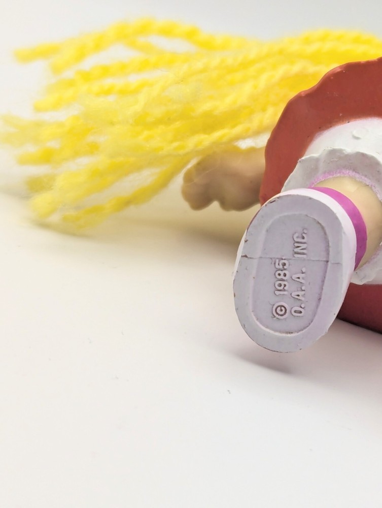 Cabbage Patch Kid Girl 1985 plastic PVC Figure Yarn Hair RARE pink/red Combo. Condition is Used. Shipped with USPS Ground Advantage.