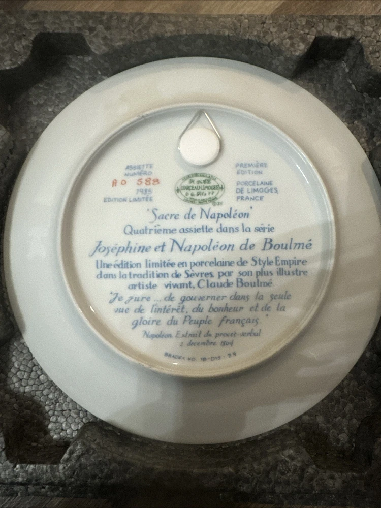 This exquisite collector plate from Limoges, France depicts the Sacre De Napoleon, or Napoleon's Coronation. The intricate porcelain design showcases the late 20th-century style of art pottery, with a multicolor palette that brings the scene to life. Measuring 8.5 inches in diameter, this vintage piece is a must-have for any collector of decorative items. The plate is produced using traditional pottery techniques and boasts a unique production style that reflects the French culture. This piece is perfect for any occasion and is sure to add a touch of elegance to your decor. Add this rare and beautiful collector plate to your collection today!