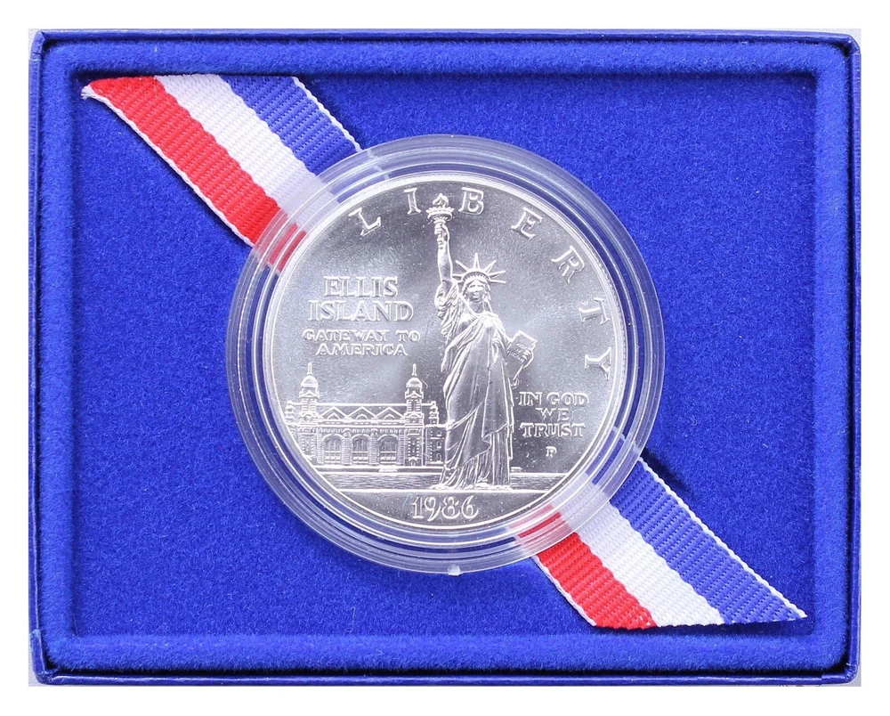 1986 P Statue of Liberty Centennial BU Commem 90% Silver Dollar OGP & COA 1986 P Statue of Liberty Centennial 90% Silver Commemorative Dollar Brilliant Uncirculated Condition Original Government Box & COA