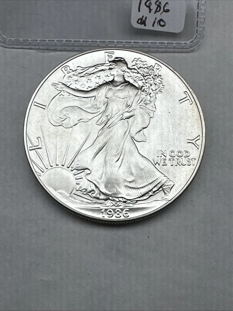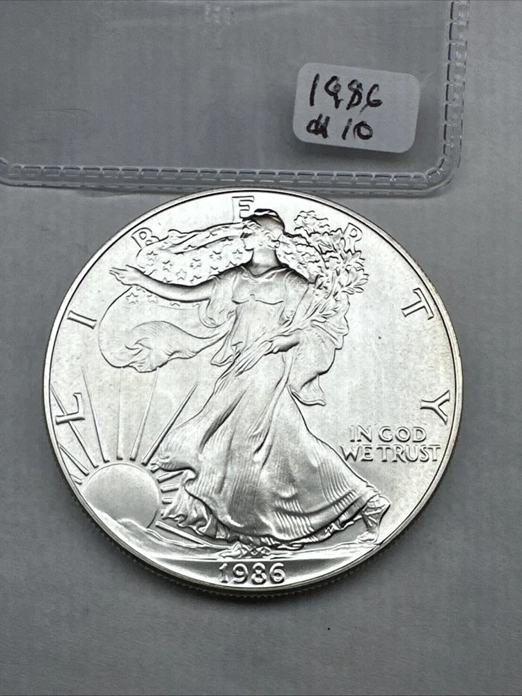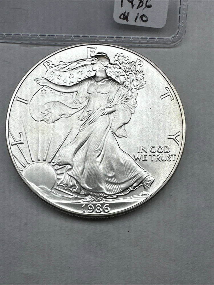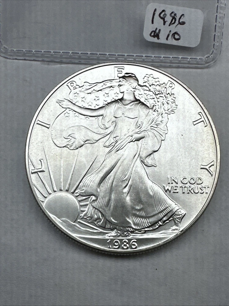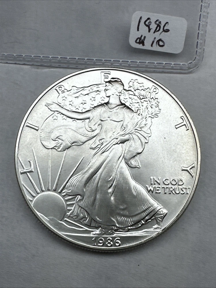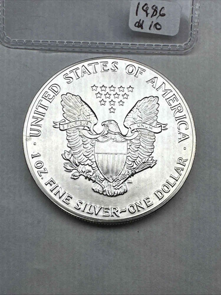 The product is a 1986 Uncirculated Silver American Eagle coin minted by the U.S. Mint. It contains 1 oz of 0.999 fine silver, making it a valuable bullion investment. This coin features the iconic American Eagle design and is a highly sought-after collectible item for coin enthusiasts and investors alike.