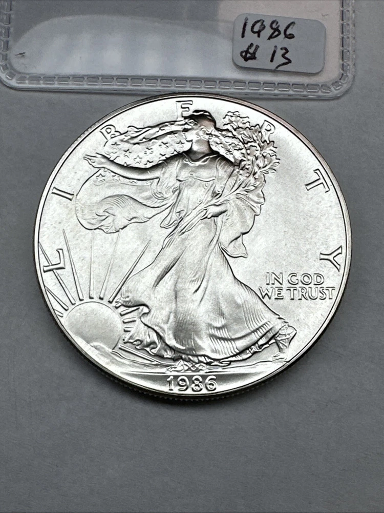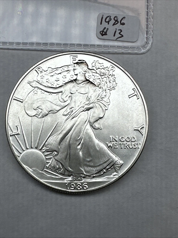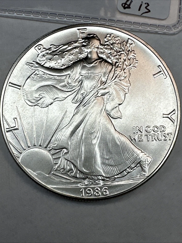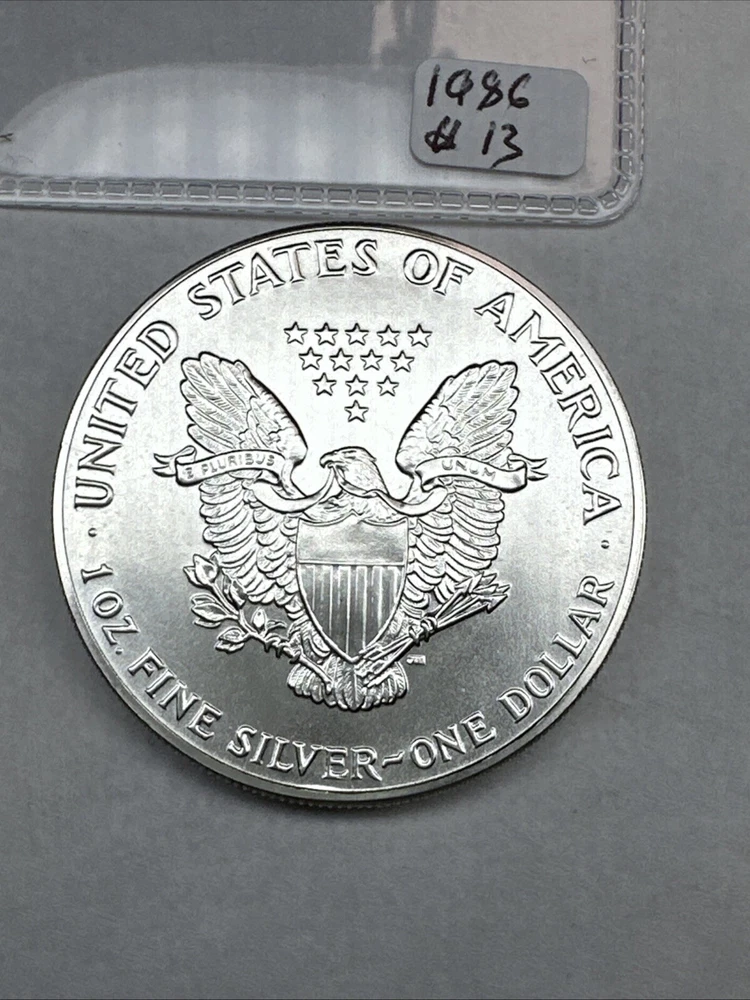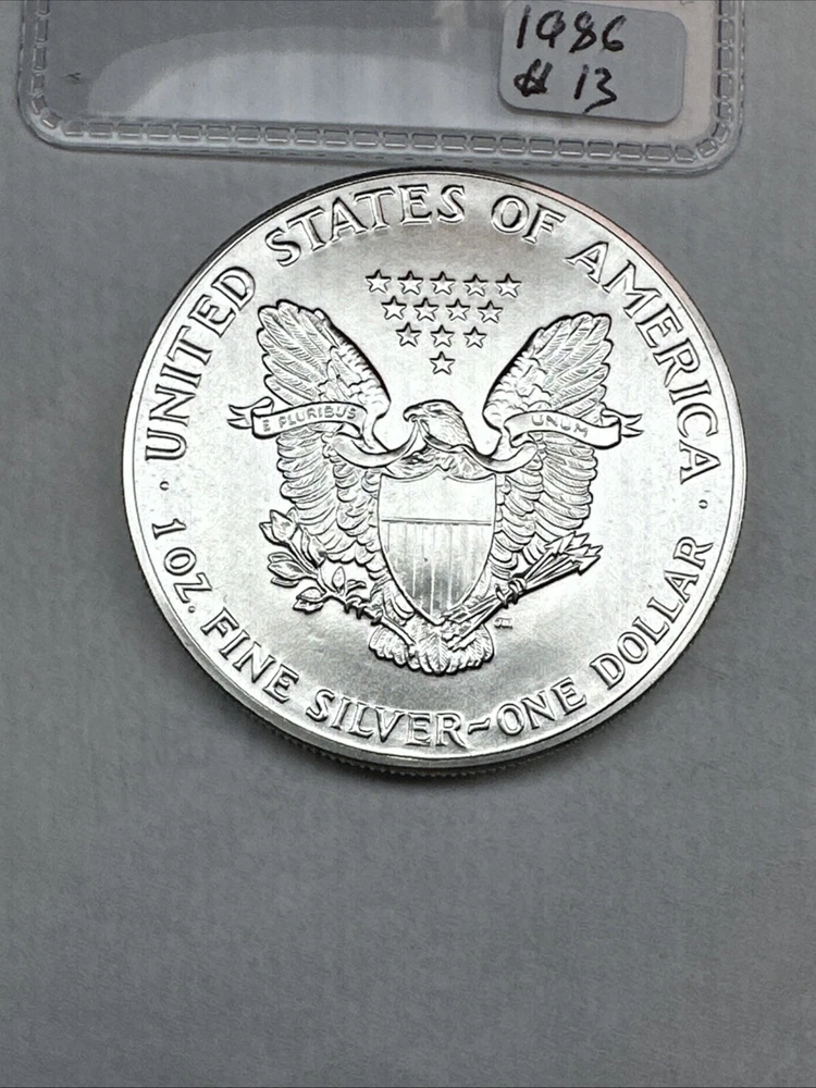 This product is a 1986 Uncirculated Silver American Eagle coin, minted by the U.S. Mint. It contains 1 oz of 0.999 fine silver. The coin features a business strike type and is ungraded and uncertified. It is a valuable piece for collectors and investors alike.