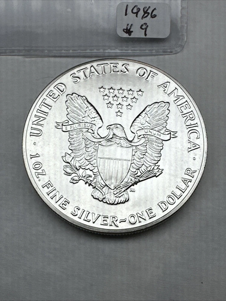 Grade: Ungraded Brand/Mint: U.S. Mint Total Precious Metal Content: 1oz Year: 1986 Strike Type: Business Certification: Uncertified Precious Metal Content per Unit: 1 oz Country/Region of Manufacture: United States Coin: American Eagle Composition: Silver Fineness: 0.999