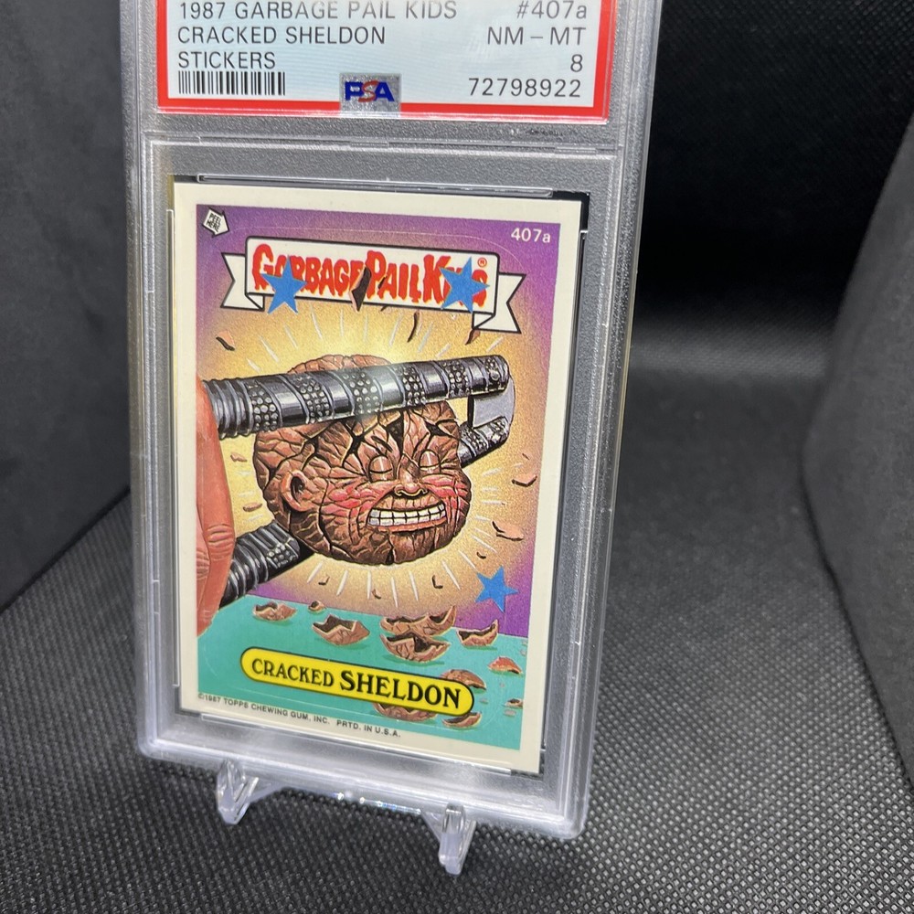 1987 GARBAGE PAIL KIDS STICKERS #407a CRACKED SHELDON PSA 8 - Pop 1, 17 Higher.
