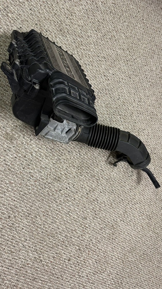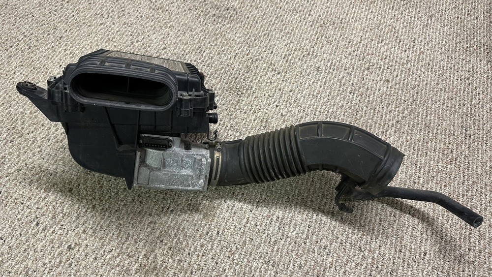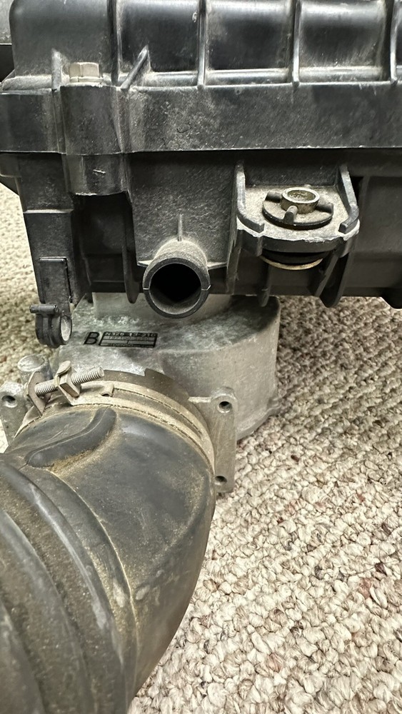 Air filter box with mass airflow sensor and intake tube removed from 1987 Mazda RX7 engine 13B