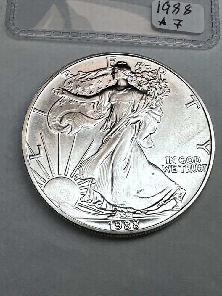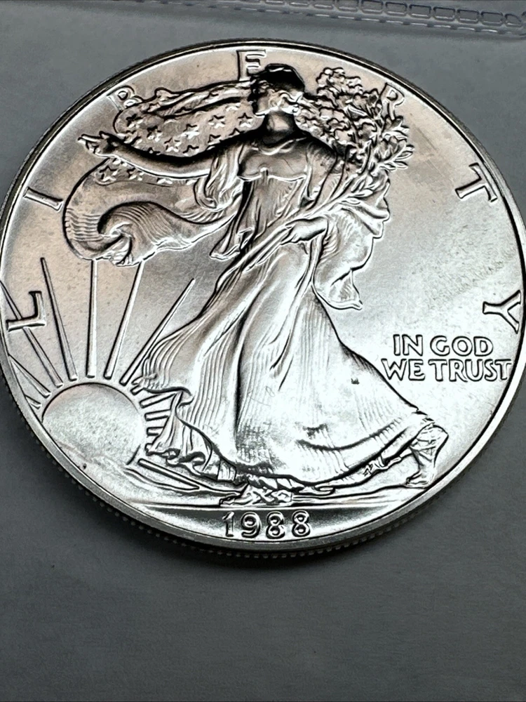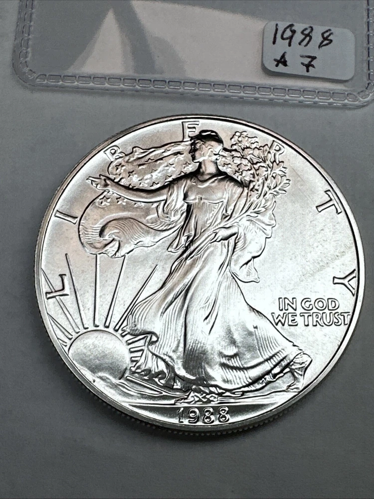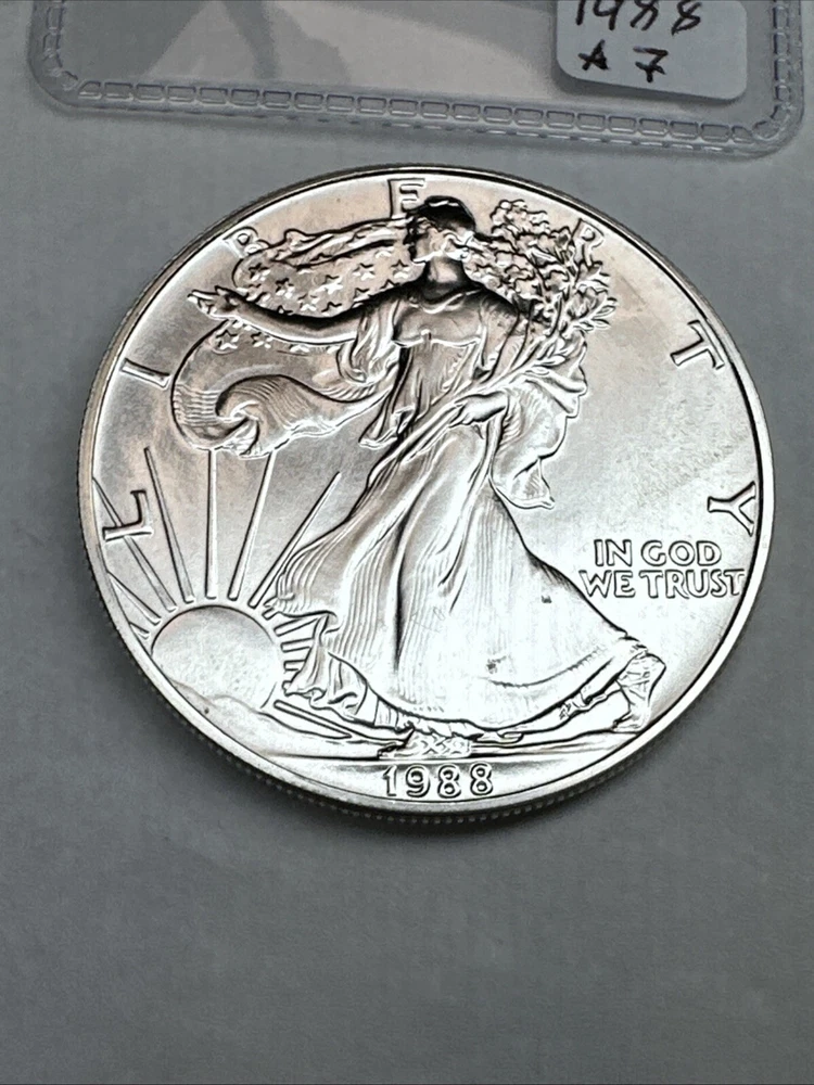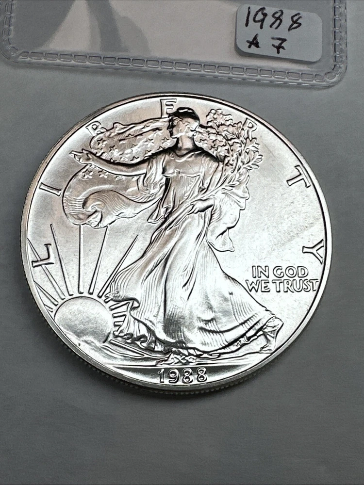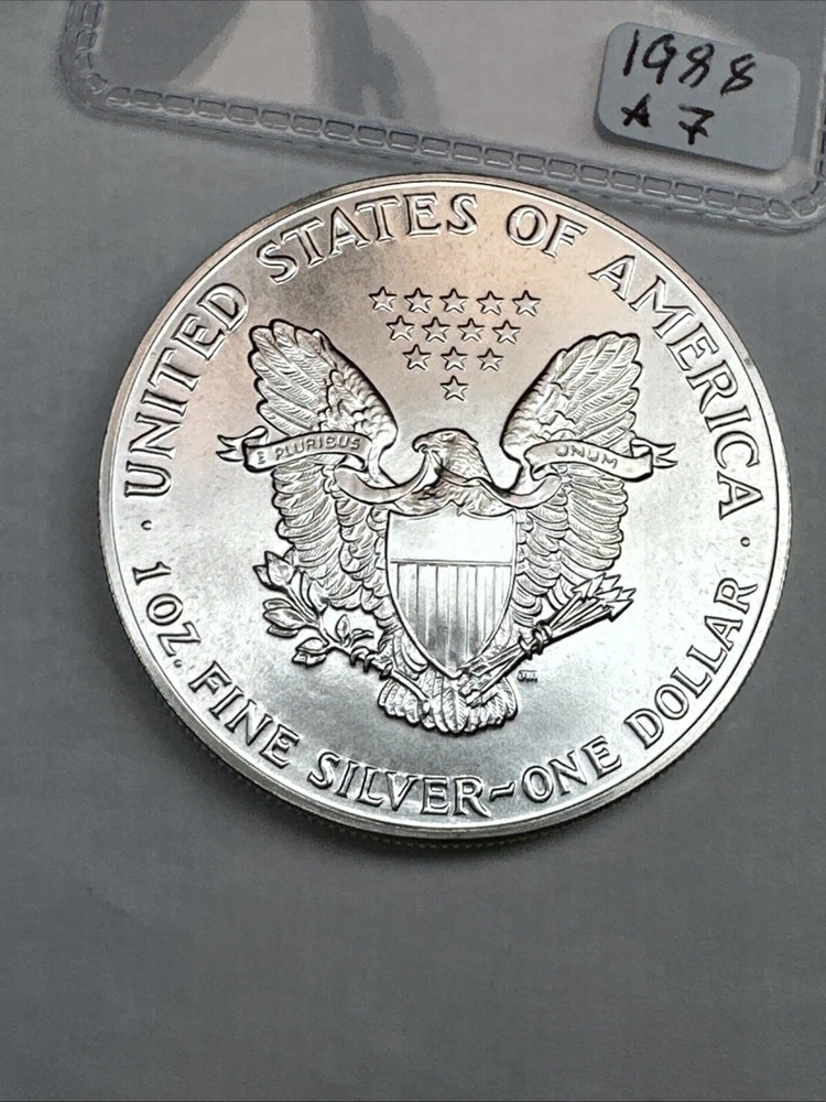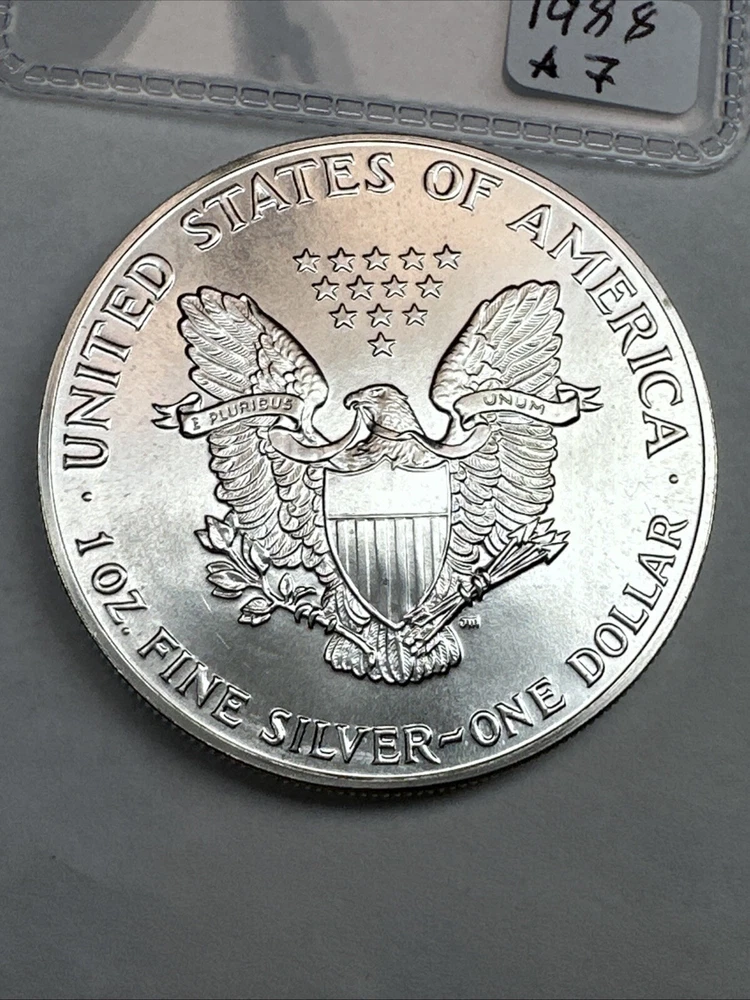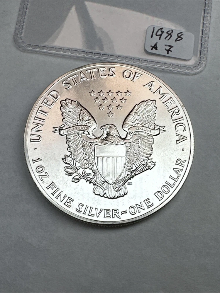 Grade: Ungraded Certification: Uncertified Country/Region of Manufacture: United States Precious Metal Content per Unit: 1 oz Total Precious Metal Content: 1oz Brand/Mint: U.S. Mint Fineness: 0.999 Brand: Silver Eagle Coin: American Eagle Year: 1988 Composition: Silver Strike Type: Business