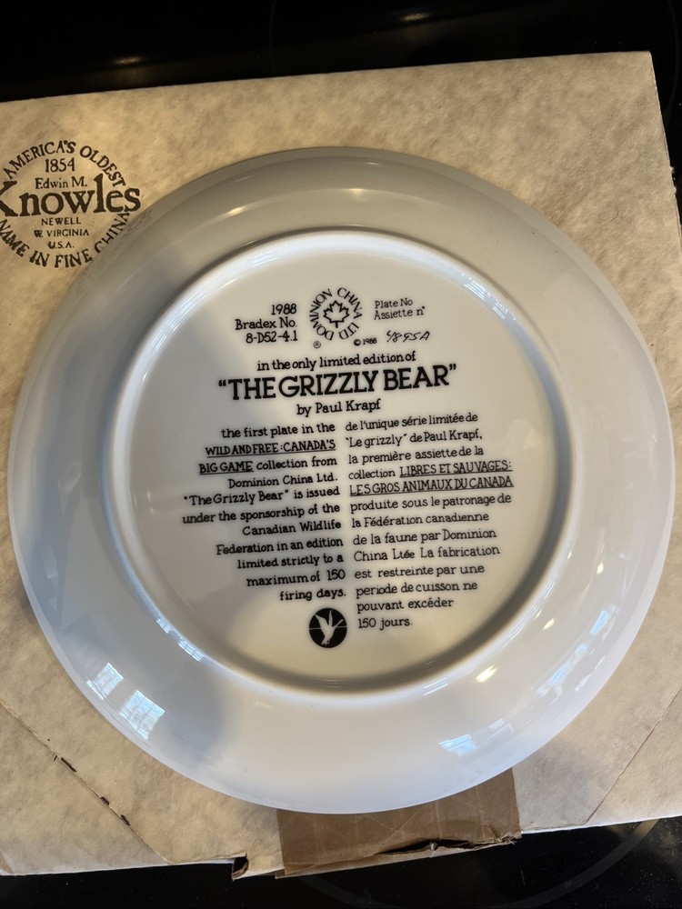 Pattern:BearShape:RoundEra:Late 20th Century (1970-1999)Production Technique:PotteryStyle:DecorativeBrand:Dominion China Ltd.Occasion:All OccasionsMaterial:PorcelainProduction Style:Art PotteryTime Period Manufactured:1980-1989Item Weight:20 ozColor:MulticolorCulture:CanadianCountry/Region of Manufacture:ChinaItem Diameter:8.5 inType:Collector PlateTheme:Wild AnimalsVintage:Yes