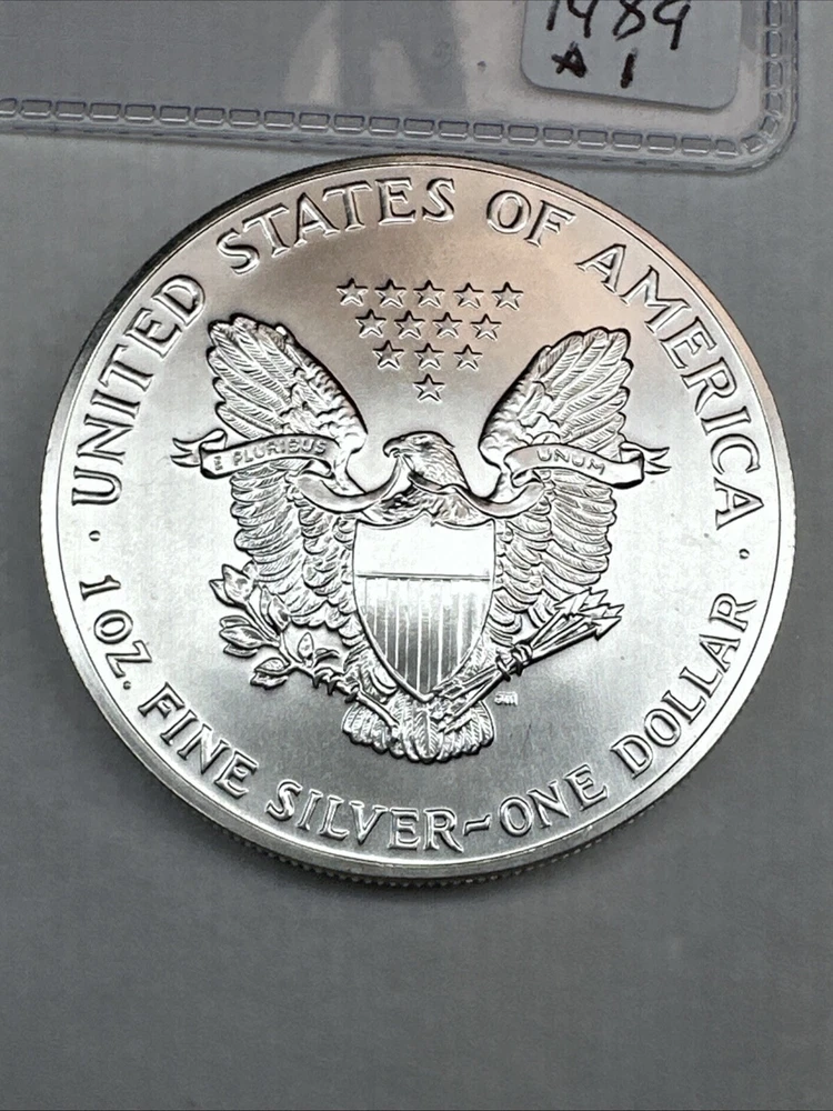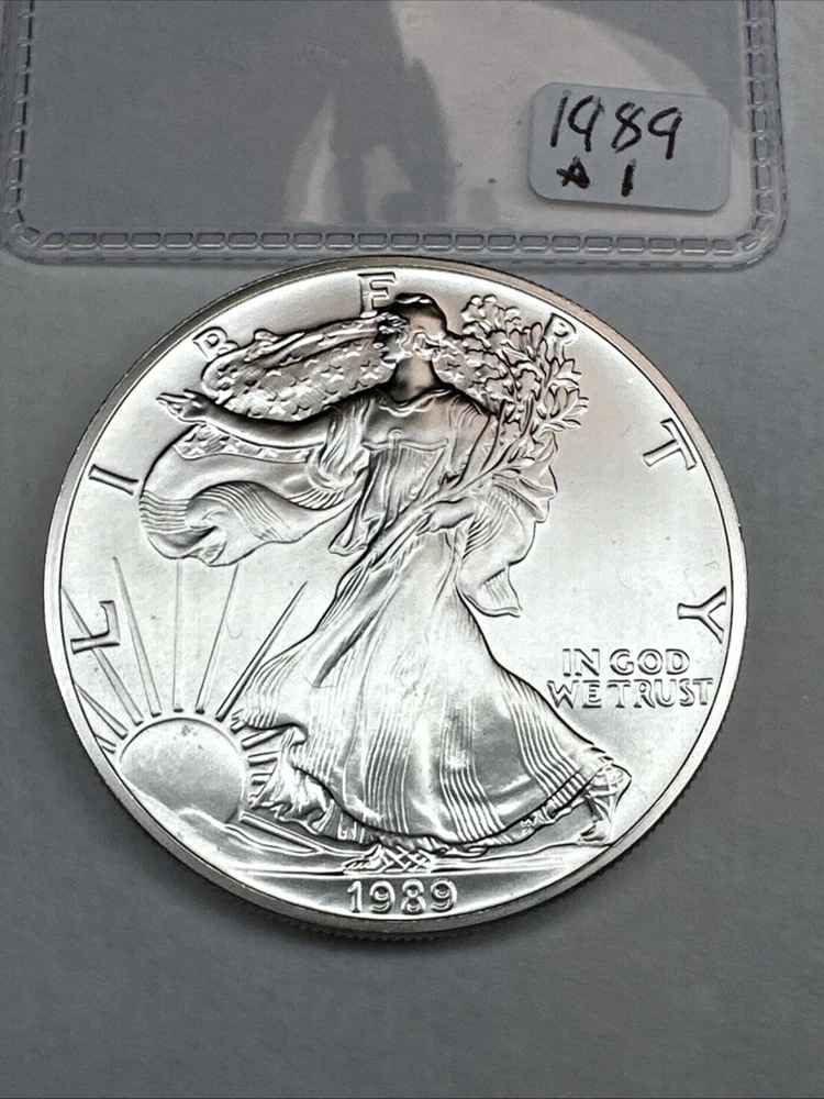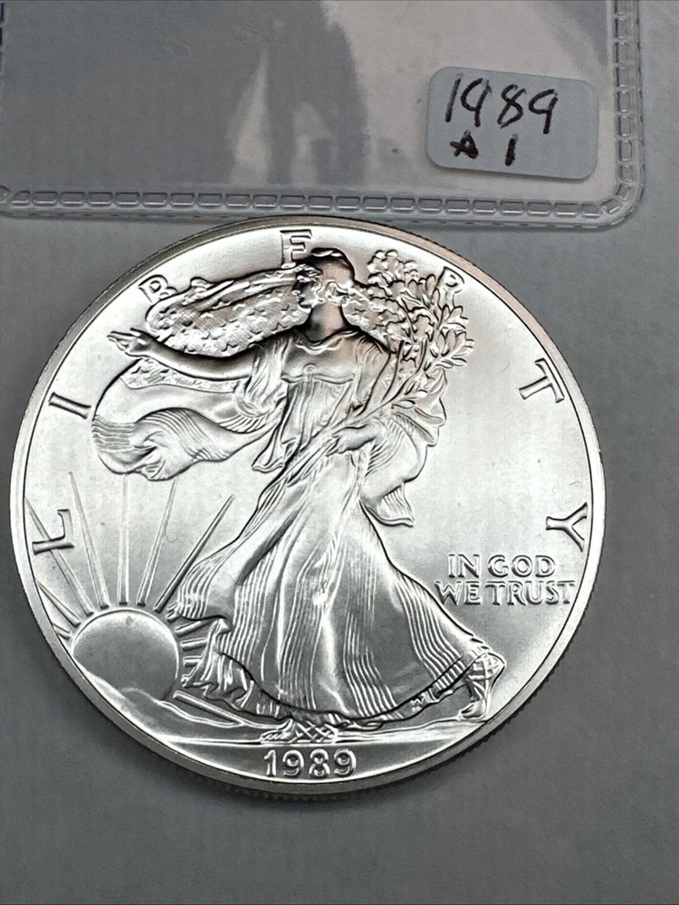 Country/Region of Manufacture: United States Fineness: 0.999 Composition: Silver Precious Metal Content per Unit: 1 oz Grade: Ungraded Brand/Mint: U.S. Mint Brand: Silver Eagle Coin: American Eagle Total Precious Metal Content: 1oz Year: 1989 Strike Type: Business Certification: Uncertified