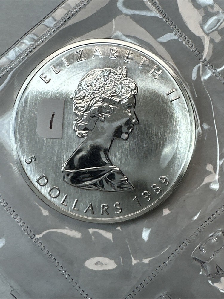 Own a piece of Canadian heritage with this 1989 Canada $5 Silver Maple Leaf coin. Made of 0.9999 fine silver, this coin features the iconic image of the Canadian Maple Leaf on the obverse side. The coin comes in an original plastic capsule from the Royal Canadian Mint and is in uncirculated condition. This coin is a great addition to any collection or investment portfolio. The coin's weight is 1 ounce and the total precious metal content is also 1 ounce. The strike type is business and the coin is ungraded. Certification is not included, but the coin's authenticity is guaranteed by the Royal Canadian Mint. Don't miss out on the opportunity to own this beautiful and valuable coin. BU Uncirculated