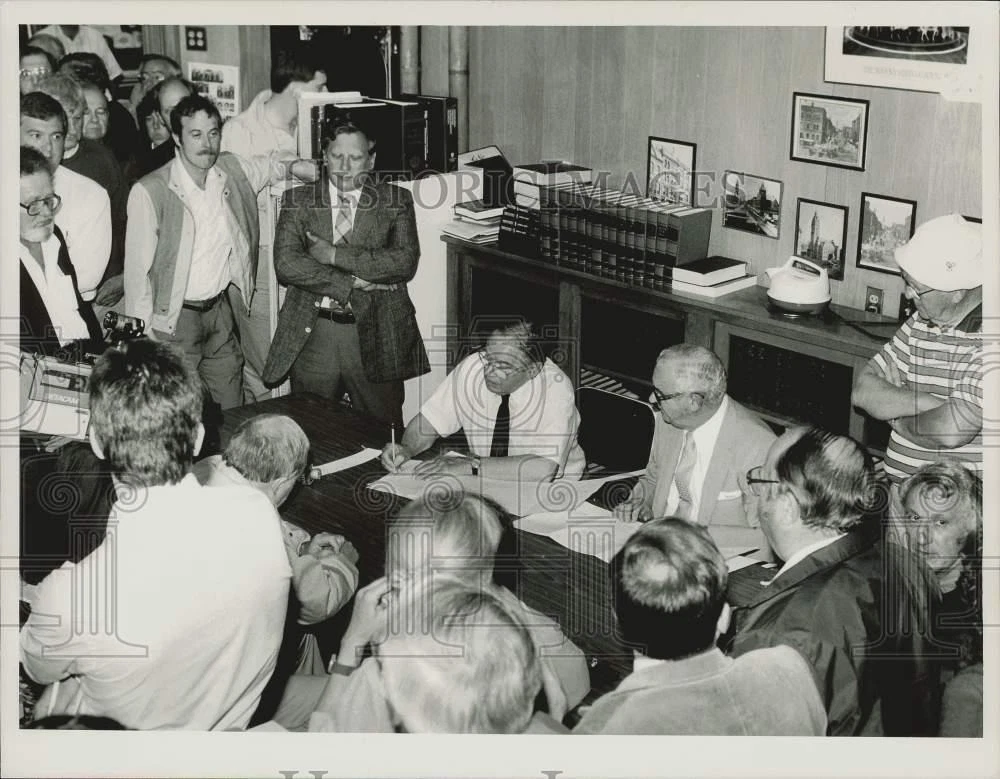 ebay template Note: Please study the images carefully to determine the condition of this vintage photograph, as it may not be in perfect condition. It may contain wrinkles, cracks, and possibly even tears due to its age and how it was handled before it got to us. A scanner may interpret colors and contrast differently than human eyes will, so it is possible that the actual photograph may be slightly darker or lighter in person. This vintage photograph is offered for sale as a collectible item and conveys no transfer of copyright. 1989 Press Photo Election commission announces results at Holyoke City Hall. This is an original press photo. Holyoke Voting - Election commission counters announce the results of the voting at Holyoke City Hall. Seated: James J. Shea (left), City Clerk; Gerard Raymond.Photo measures 9 x 7inches. Photo is dated 6-13-1989. PHOTO FRONT PHOTO BACK Historic Images Part Number: sra40505 FAQs Q: Can I just download a digital version instead? A: No, we sell only vintage originals and do not make or distribute any copies, including digital ones. Q: Do you combine shipping and invoices? A: Multiple photos won on the same seller ID combine automatically through the eBay checkout process. If you encounter problems with this, send us a message via eBay messaging and we will send you an invoice. Due to eBay limitations, we cannot combine items won on our different seller IDs for a single shipping charge. Q: How quickly do you ship the items once paid? A: We ship within one business day after your payment clears. If you do not receive an "order shipped" email from us by the close of the second business day from submitting payment, please e-mail us via eBay messaging. Q: How do you make sure my photograph arrives safely? A: We package each order between two cross-corrugated pieces of cardboard to ensure that the package is as difficult to bend as possible. We then wrap each order in a plastic sheet to help protect against moisture. We want you to rest assured that we take every precaution to ensure that the photograph you receive will be in the same condition in your care as it was in ours. Q: Will the "Historic Images" watermark be on my photo when I receive it? A: No. This is a digital watermark we use to protect our images. It is not printed on the photo. Q: What are your office hours? A: eBay for us is a business, and a very fun one to be in! We are open M-F 9 to 5 (CST). Therefore, we do not return e-mails and phone calls over the weekend. We observe the following holidays: New Years Day, Memorial Day, Fourth of July, Labor Day, Thanksgiving and the day after Thanksgiving, Christmas Eve and Christmas Day. Q: Where did all these vintage photos come from? A: These original vintage photographs are from various news service and newspaper photo archives from locations around the country including: Boston, Detroit, Tampa, Chicago, Denver, Seattle, New Orleans, Milwaukee, Portland, Spokane, and more. We do not copy or reproduce any photographs -- every item is a unique vintage piece that was housed in a news archive. Q: Can I use this photograph in my book/blog/website? A: The short answer is no. There is no transfer of copyright for republication or reproduction with these photographs when you purchase them, and only photographs taken before 1923 are currently automatically in the public domain. Permission from the copyright holder, which usually can be identified from the back of each photo, must be sought to republish or reproduce the image for any purpose. Q: Do you relist items (in case I miss an auction ending)? A: Auction items that receive no bids are relisted in our store (historicimages-store on eBay) as a fixed-price item and at a higher price than the starting auction price. Q: Do you leave feedback? A: Yes, we always leave feedback for buyers. Our software monitors when our buyers leave us feedback, then notifies us that we can leave feedback for the buyer. Rest assured, if you leave feedback, we will do the same! Check out our family of eBay IDs: historicimages01 Sports Photos historicimages02 Entertainment Photos historicimages03 Americana Photos historicimages04 International & War Photos historicimages05 Transportation Photos historicimages06 Photos of All Subjects historicimages07 Entertainment Photos historicimages08 Newsworthy Photos historicimages09 Entertainment Photos historicimages10 Sports Photos historicimages-store Our largest fixed-price selection historicimages-gallery Hand-picked photos Saturday night auctions About Us Historic Images was formed in September 2009, with a handful of scanners working out of a basement to digitize newspaper photo archives. We have since moved out of the basement, and we can now archive thousands of photos per day. Our company has worked with magazines and newspapers from Detroit, Boston, Denver, Seattle, Tampa, Chicago, and New Orleans, just to name a few. We are constantly adding to our inventory, and have assembled an archive of millions of photos to date. As our company evolved, we began our eBay business, which brings thousands of fresh auctions per week to the world's largest online auction marketplace. Our custom software systems and team of great employees allow us to efficiently scan and sell large photo archives online. At the very core of our company's DNA is a strong commitment to customer satisfaction and strict integrity for our product. Our promise to you is that we will do everything in our power to provide you a great buying experience. Copyright 2009 - Present, Historic Images, Inc. Sell Smarter with Kyozou. Inventory and Ecommerce Management