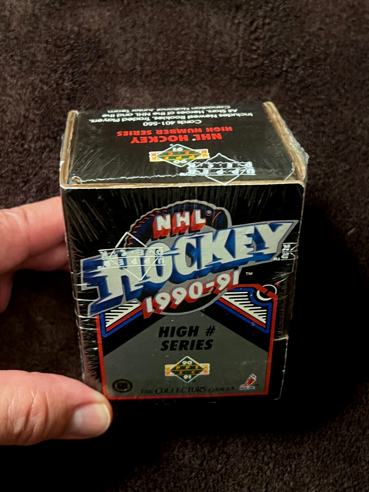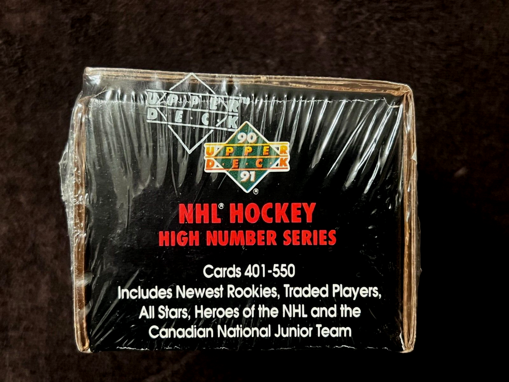 This factory-sealed 1990-91 Upper Deck Hockey High Series set is a dream for collectors! Packed with 150 mint-condition NHL cards (#401-550), it's a rare gem that captures hockey history. Upper Deck's quality shines through, making it a must-have for serious fans and investors. The nostalgia of the 90-91 season adds extra value—absolutely worth adding to your collection!