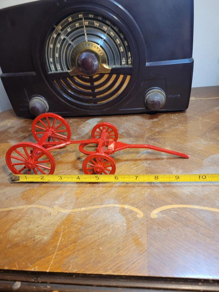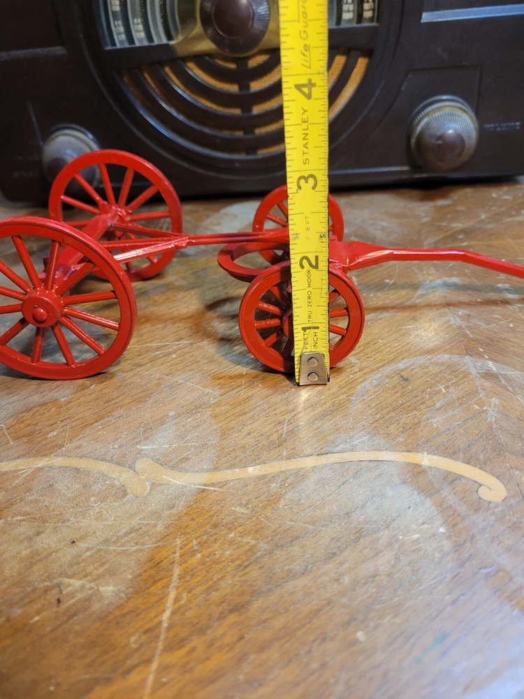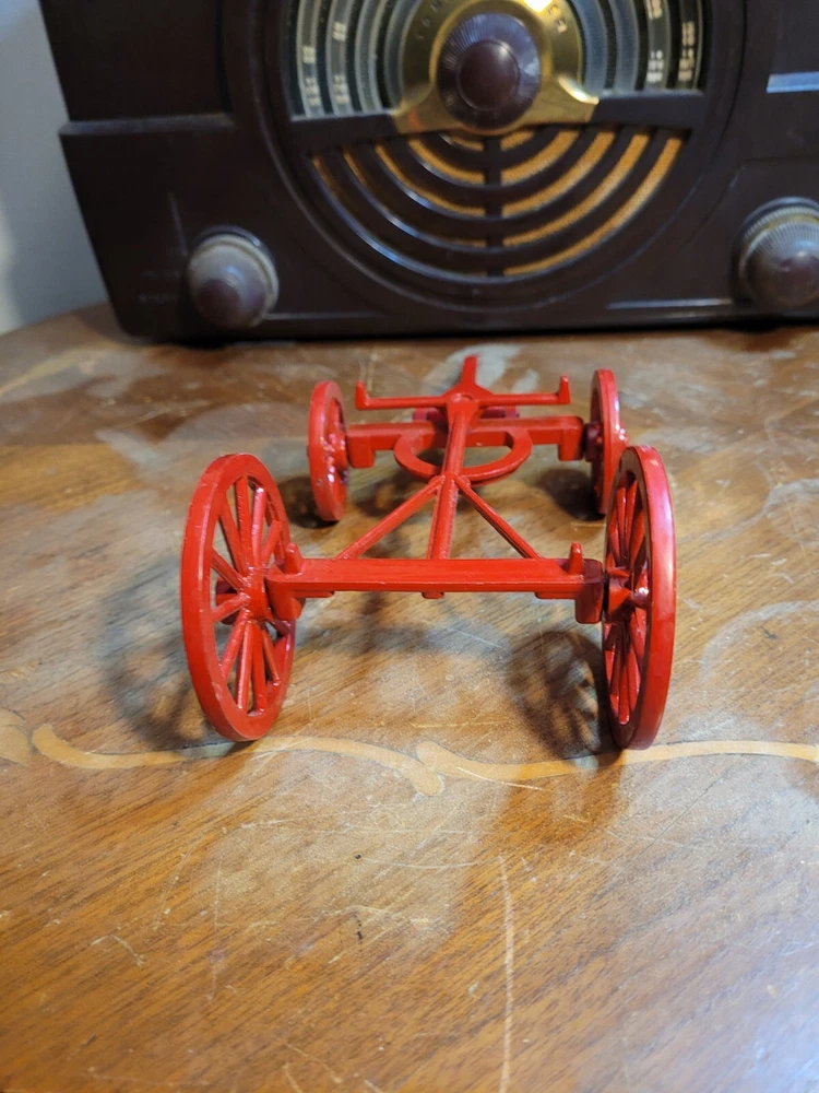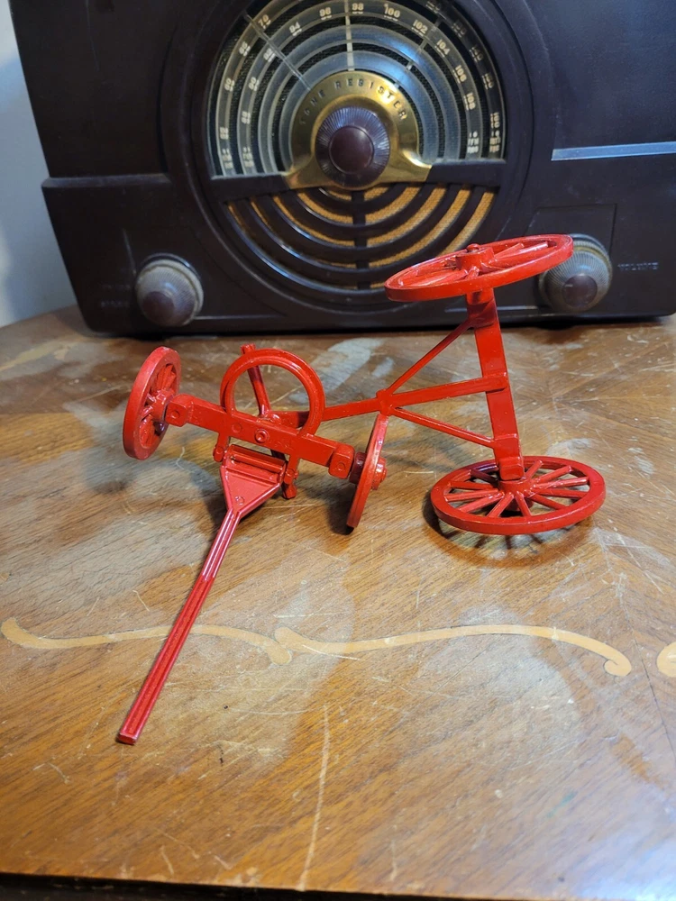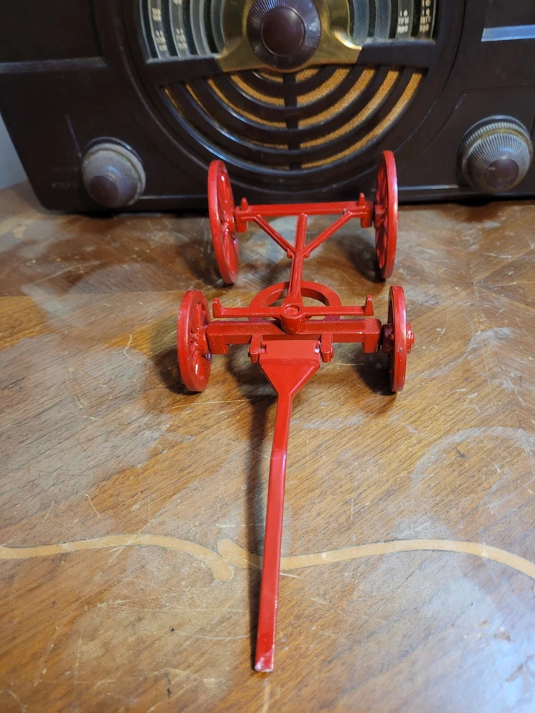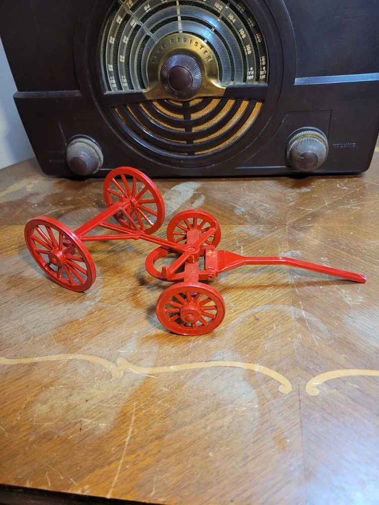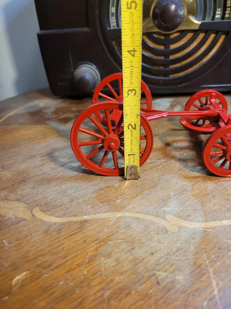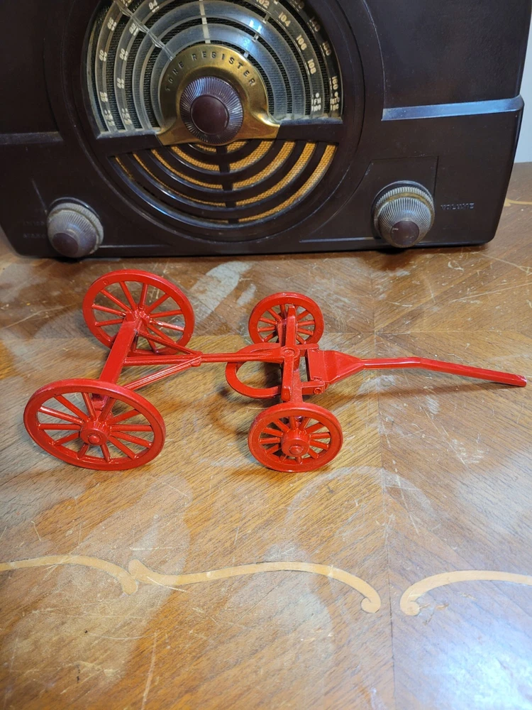 This vintage die-cast wagon is a must-have for any collector of farm vehicles. The bright red color and 1:16 scale make it a striking addition to any display. The toy wagon features the iconic John Deere brand, adding to its unique charm. Although it has been previously enjoyed, it remains in great working condition and ready for display. Don't miss the opportunity to add this gem to your collection!
