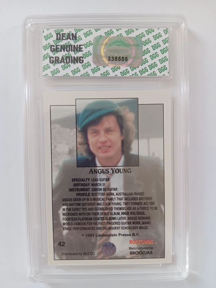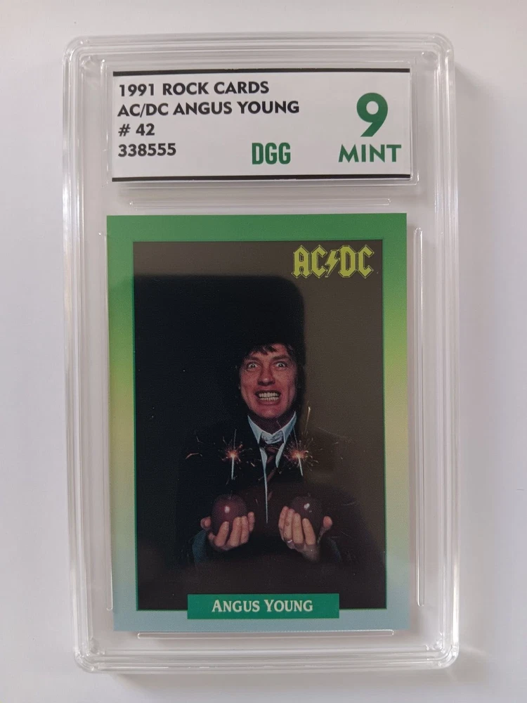 1991 Rock Cards AC/DC Angus Young # 42 Trading Card Graded DGG 9 Serial # 338555 View card info at https://deangenuinegrading.godaddysites.com Condition: Graded 9 , please see all pictures. Shipping: USPS. Questions: Please message. Thank You !!