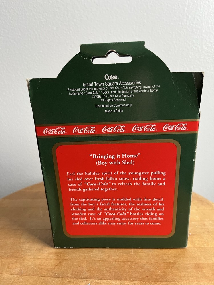 1992 Coca-Cola Coke Town Square Collection Bringing It Home Boy With Sled #7960