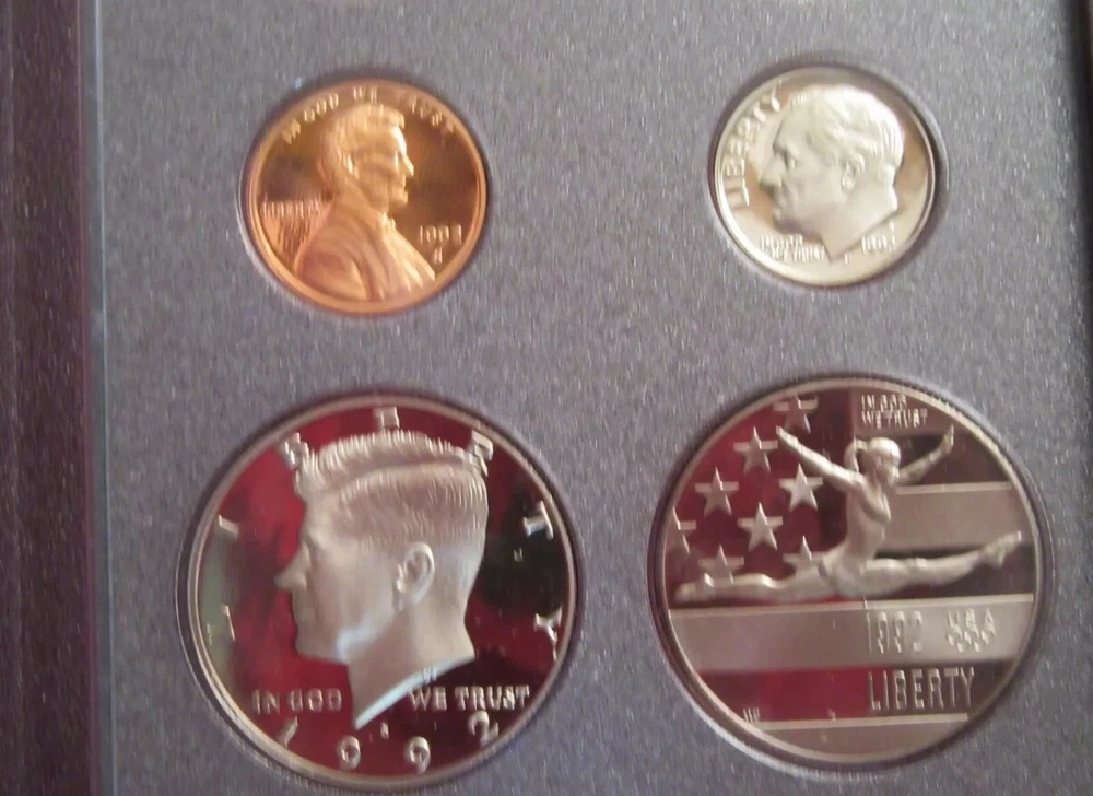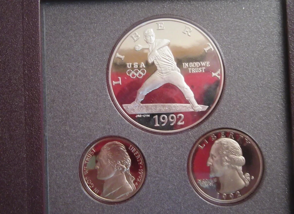 The 1992 US Mint Prestige set is a must-have for any serious coin collector. This set includes seven proof coins, all in excellent condition, with a certificate of authenticity. One of the coins is a silver dollar commemorating Olympic Baseball, a rare variety that is sure to impress. All of the coins are made of modern silver/clad, and were struck in San Francisco. They feature a beautiful design and exceptional craftsmanship, making them a valuable addition to any collection. This set is a true treasure, and a great investment for the future.