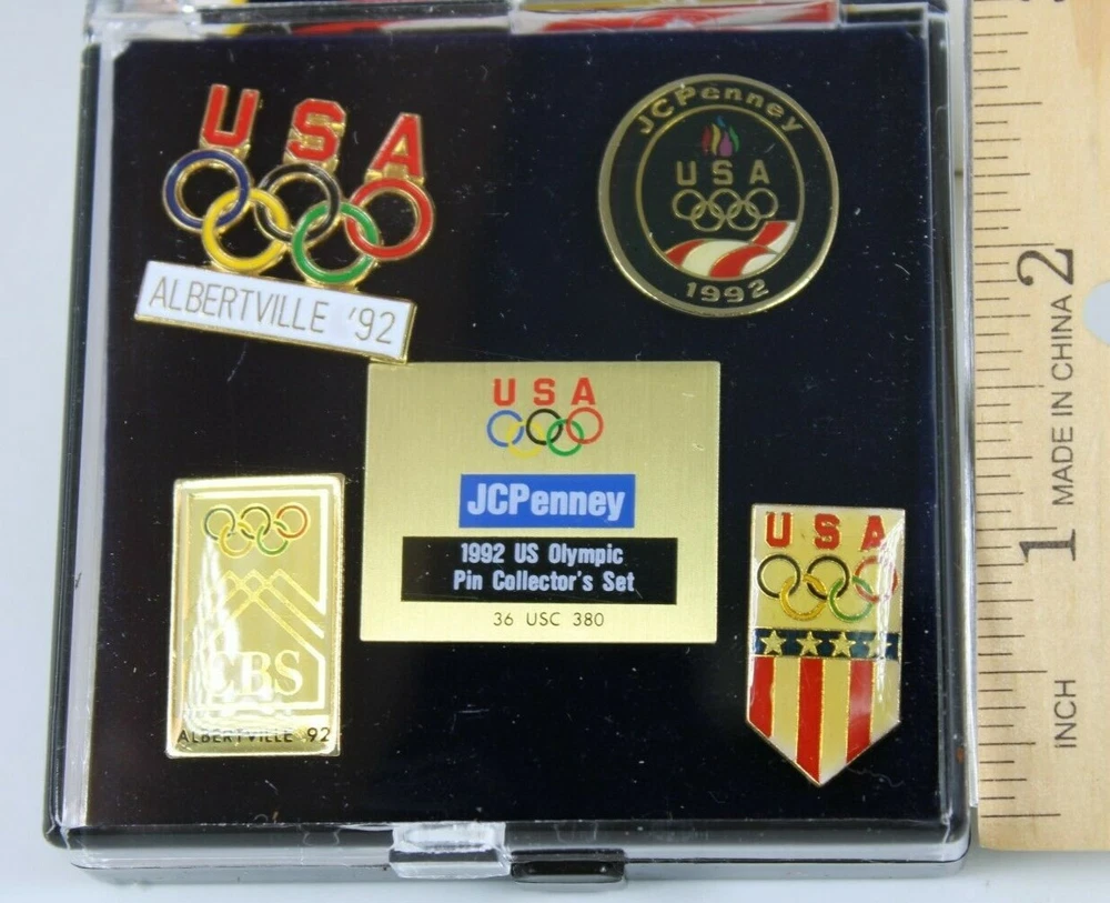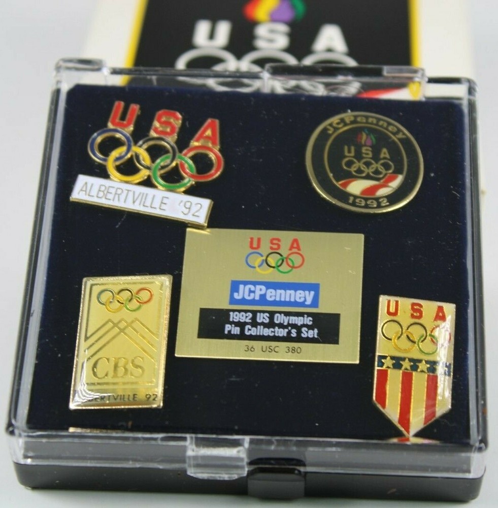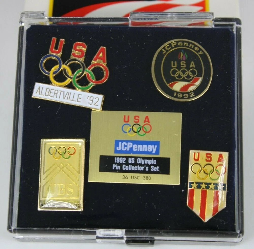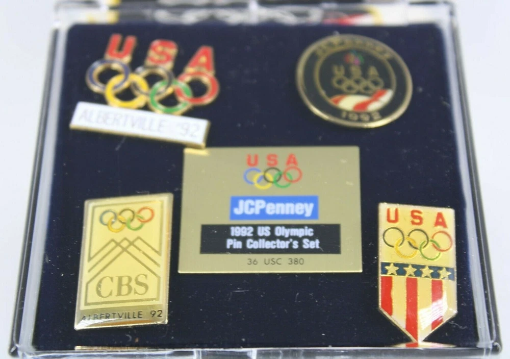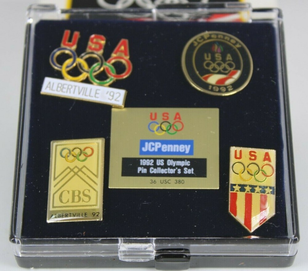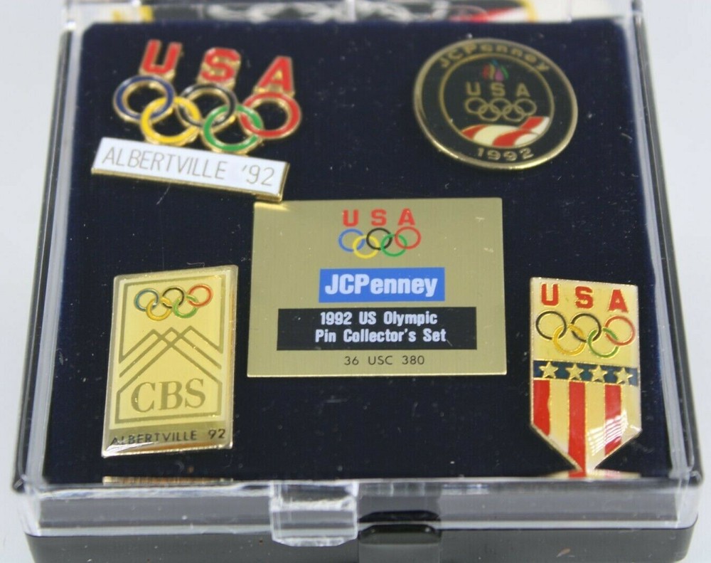 1992 JCPENNEY U.S. OLYMPIC PIN COLLECTOR'S SET - 5 VINTAGE PINS NEW WITH CASE EXCELLENT OLYMPICS COLLECTIBLE SET OF 5 VINTAGE PINS FROM 1992, DISTRIBUTED EXCLUSIVELY BY JC PENNEY NEW CONDITION, WERE NEVER OPENED ONLY OPENED TO INSPECT CONDITION AND TAKE PICTURES✨✨ VERY HIGH QUALITY WITH COLLECTORS CASE PLEASE SEE PICS GREAT COLLECTIBLE WOULD MAKE A GREAT GIFT Will ship to you with great care. Will ship to the United States and Protectorates via USPS International shipments will ship via Ebay's Global Shipping Program (GSP) International packages will ship within one business day to eBay's GSP. eBay's GSP will then ship the package internationally. Handling and Shipping times may vary with GSP. Brought to you by The VinKris Collection
