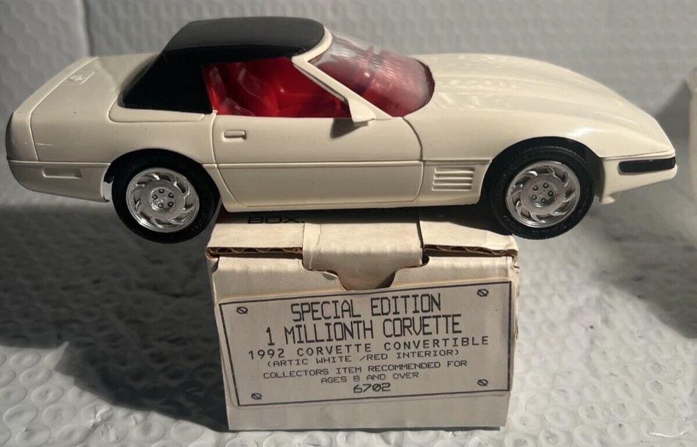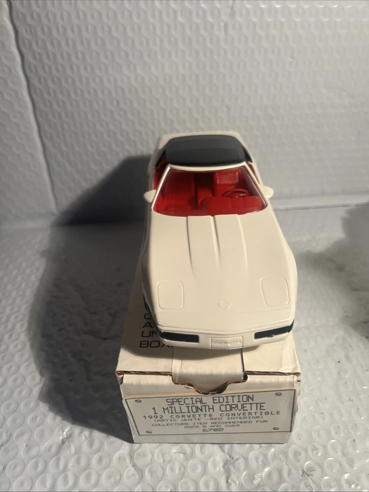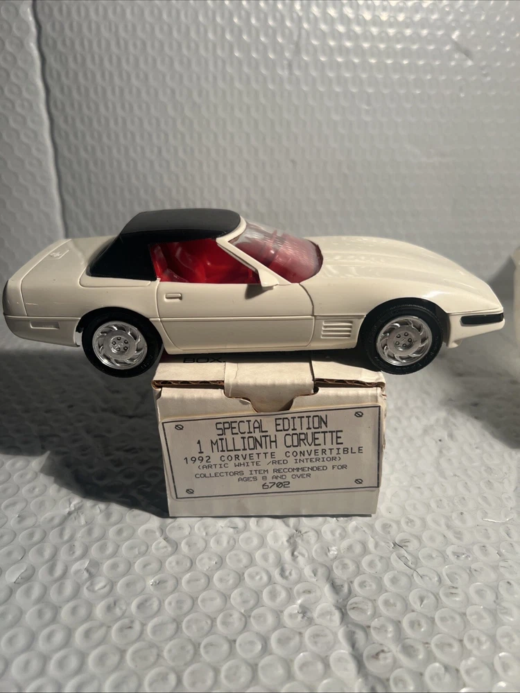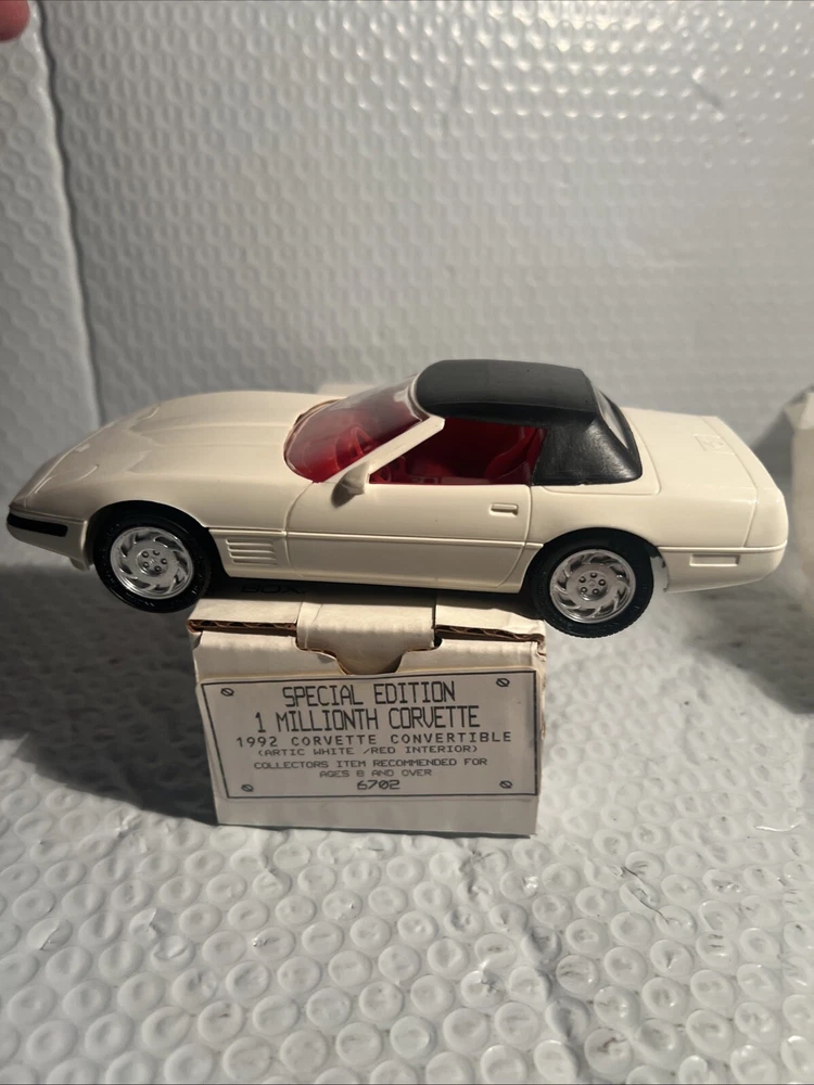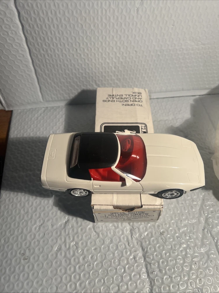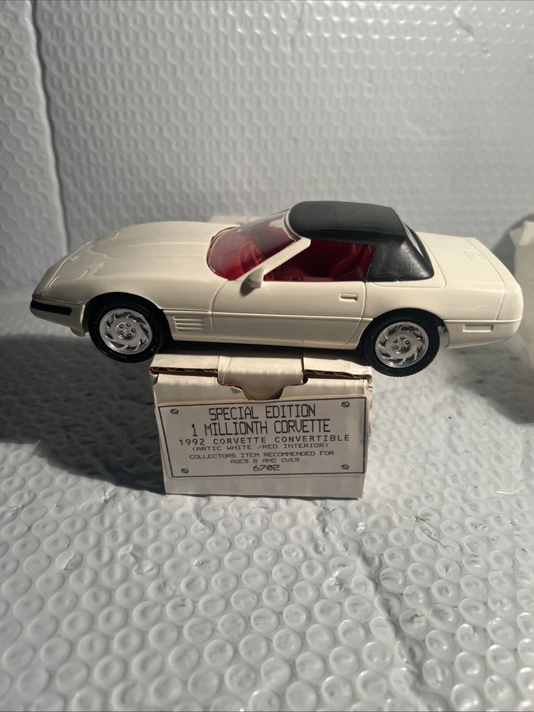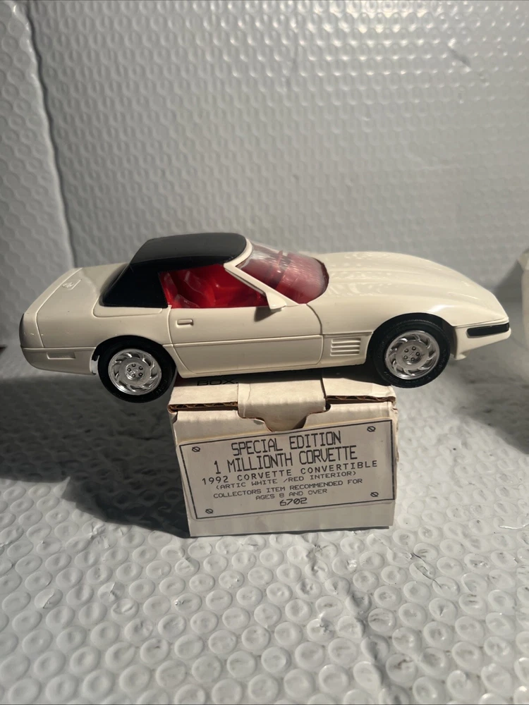 We Strive for nothing less than 5 Star FeedBack and 100% satisfied buyers! If for any reason you are not completely satisfied with your purchase before leaving feedback Please contact us with any questions or concerns. 1992 WHITE Corvette Convertible 1 Millionth Dealer Promo Model Car 1/25th in Box Condition: BRAND NEW condition see photos original . If there is anything wrong with the item or not as described, please contact me as soon as possible. Item is for sale as it came to us. All items pictured are included in auction. No other accessories are included in auction. please read our descriptions and check our pictures for the best item explanation before purchase. Please read the item description and look at the photos carefully before bidding We will describe the item to the best of our ability. PLEASE ASK QUESTIONS PRIOR TO BIDDING. WE WILL BE MORE THAN HAPPY TO ANSWER QUESTIONS THE BEST WE CAN Buyer assumes responsibility for all shipping and processing charges. THIS AUCTION IS FOR 1 (one) item unless otherwise specified. Bchanes27 reserves the right to end any auction at anytime! All of our items will typically ship within 1 Business day After payment is confirmed. WE ONLY ACCEPT PAYMENT THROUGH PAYPAL AND ONLY SHIP TO U.S. ADDRESSES Except Hawaii, Alaska and Puerto Rico. Be sure to check out our other items and save us as a favorite seller! Keep an eye on our auctions, you never know what we might have! We appreciate you looking at our items, Good luck and Happy Bidding