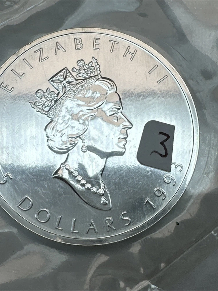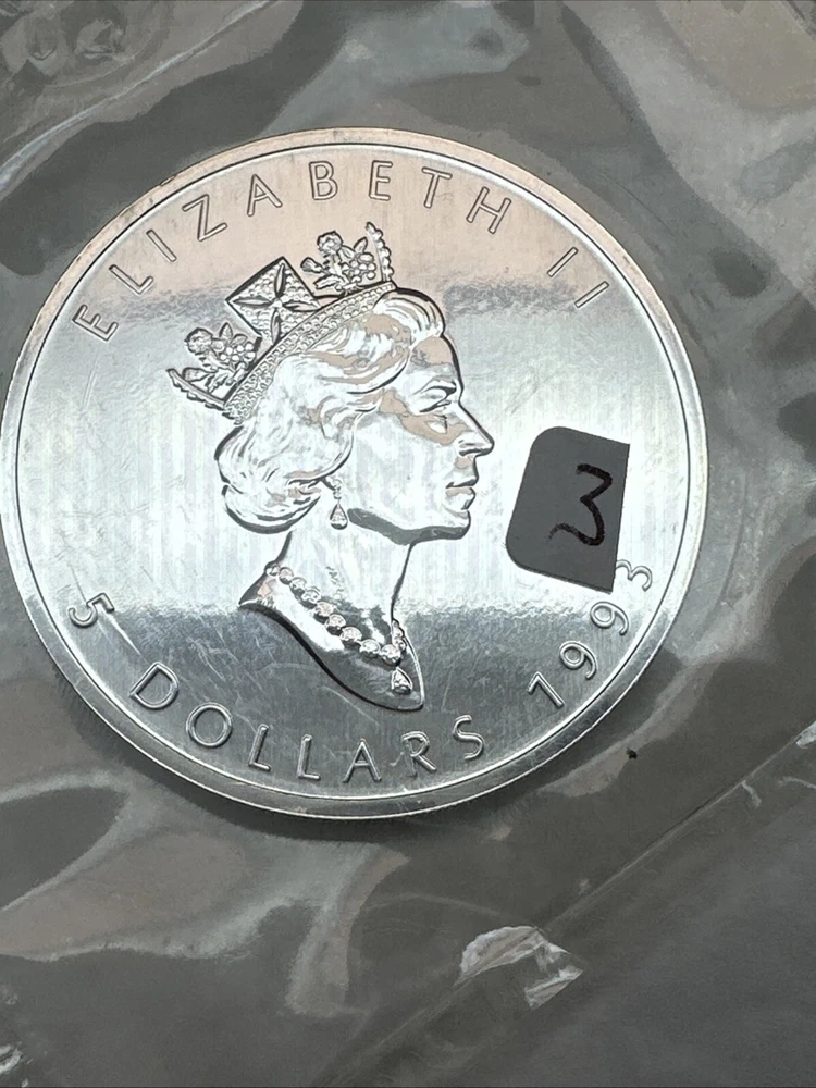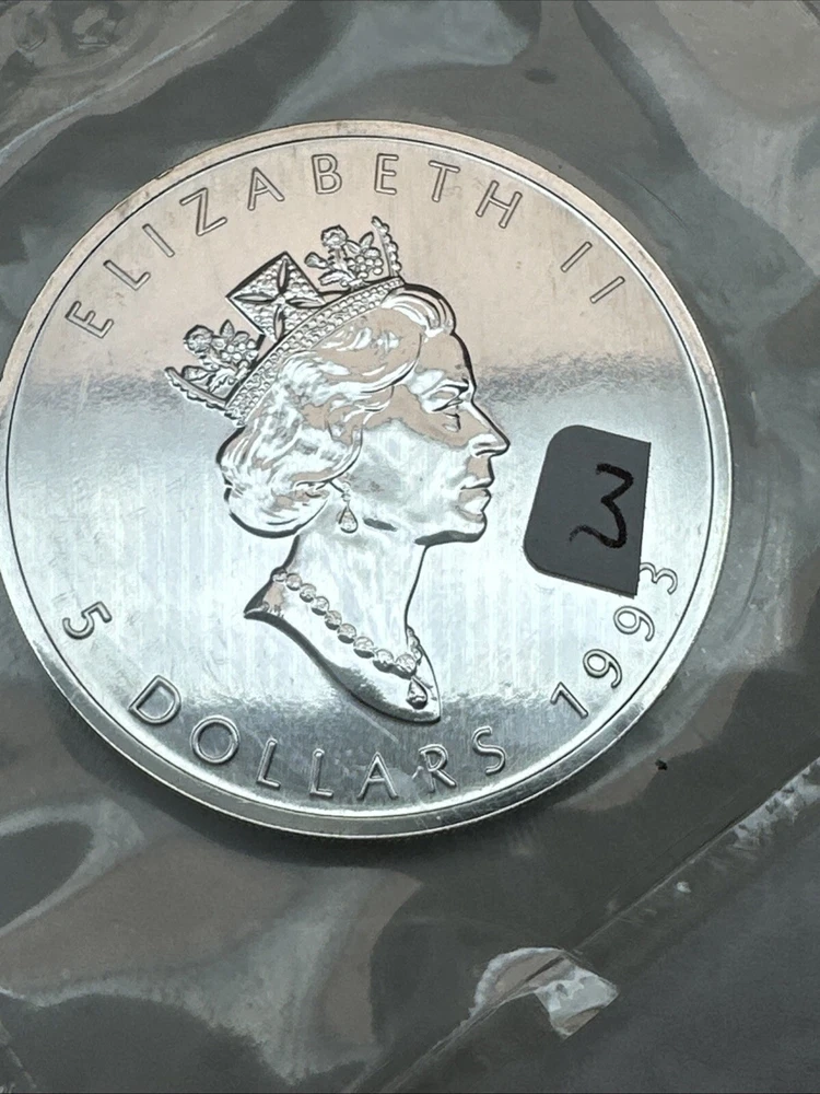 This 1993 Canadian Maple Leaf coin is made of 1 Troy Ounce of 0.9999 Fine Silver. It is in Business Grade and has not been graded. The coin is struck by the Royal Canadian Mint and comes in original packaging. The coin is a great addition to any collection and a good investment.
