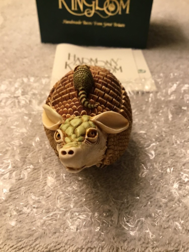 This adorable armadillo figurine is a must-have for collectors! The intricate details and playful "Baby On Board" design make it a charming addition to any display. Still in its original box, it's in perfect condition and feels like a rare treasure. The craftsmanship by Peter Calvesbert is fantastic, and since it's retired, it's a special find. Super cute and well-made—highly recommend!