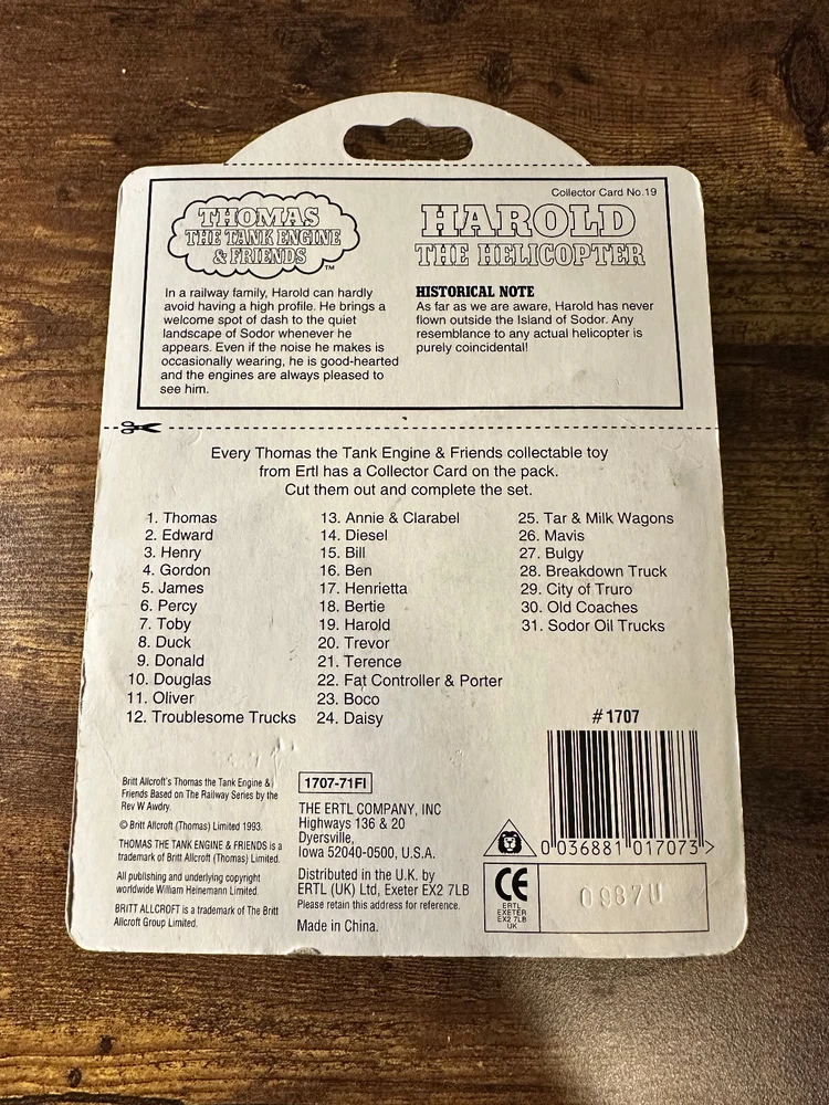 1993 ThomasThe Tank Engine & Friends ~~HAROLD the Helocopter~~ Ertl Britt NEW Brand new/sealed! See other listings for more Thomas!