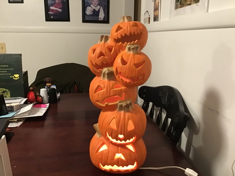 Celebrate Halloween with a touch of vintage charm using the 1993 Trendmasters Stacking Tiered Pumpkins. This set of six foam-molded pumpkins, each standing 19 inches tall, creates a delightful autumnal display that's perfect for the spooky season. The warm orange hue casts a cozy, nostalgic glow, ideal for both Halloween and fall-themed decorations. Crafted by Trendmasters, a brand known for festive decor, these pumpkins were manufactured in China during the early '90s, falling within the 1990-1999 time period. They offer a unique addition to your Halloween collection, with a design that remains as timeless as the occasion itself. Please note, this set is not intended for personalization, and no modifications have been made to the original product.