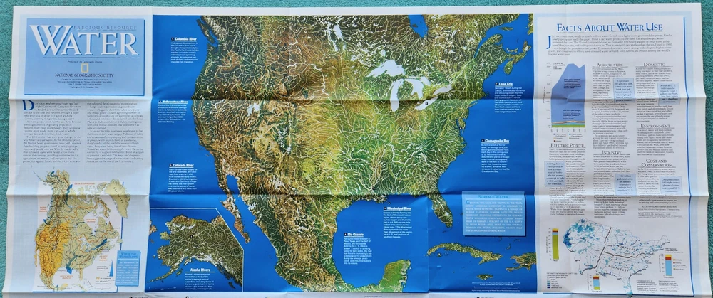 1993 USA Water Precious Resource Massive 30" x 42" Fold Out Map & Poster This vintage map would make a wonderful addition to your collection. Thanks for looking.
