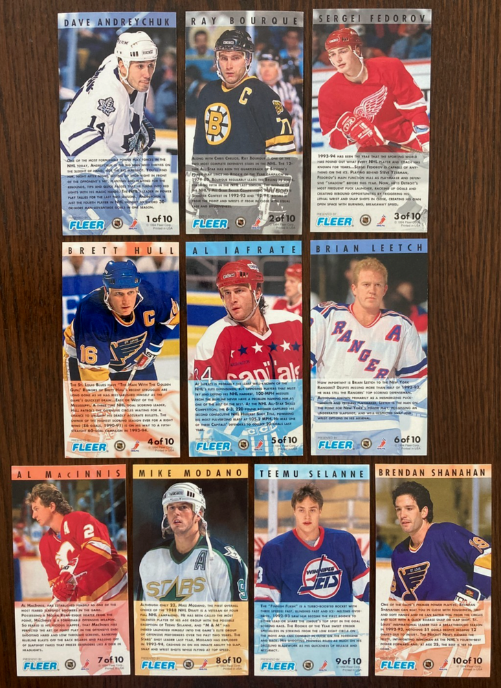 1993-94 Fleer Power Play Tall Boy Complete Set 1 - 10 Jaromir Jagr, Pavel Bure++