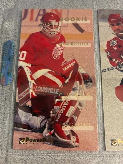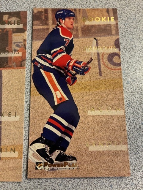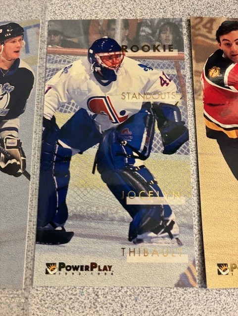 1993-94 Fleer Power Play Rookie Standouts - Complete 16-Card Tall Boys (Size: 2 1/2" x 4 11/16") Insert SET . All cards vary from Near Mint to Gem Mint in condition . Loaded with RCs, Stars and Superstars: Arnott, Pronger, Yashin, plus many more. Please see Checklist below for Player Names and card numbers. Please note that although the cards are in 6-pocket sleeve pages in the photos, the set will not be shipped with the pages. The cards in the photos are part of the set and represent a sample of what all the cards in this hand-collated set will look like. 1993-94 Fleer PowerPlay - Rising Stars Hockey 1 Arturs Irbe 2 Vyacheslav Kozlov 3 Felix Potvin 4 Keith Primeau 5 Robert Reichel 6 Geoff Sanderson 7 Martin Straka 8 Keith Tkachuk 9 Alexei Zhamnov 10 Sergei Zubov To date, we have left positive feedback for every single successful transaction since we started in 1999. Our main goal, though, is to get the items out ASAP into your hands. The time we spend on ensuring this, however, limits us into doing our Feedback only once or twice a month at which time we catch up on ALL of our feedback. So please be patient and do not e-mail us about leaving you feedback, you have our guarantee that it WILL eventually get done.