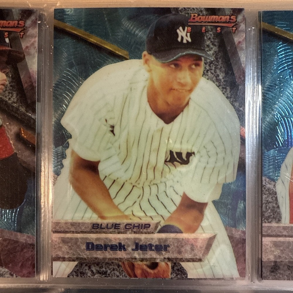 Language:Englishgtin13:Does not applyYear Manufactured:1994UPC:Does not applyVintage:NoSet:1994 Bowman's BestManufacturer:ToppsCountry/Region of Manufacture:United StatesNumber of Cards:200Season:1994League:Major League (MLB)Type:Sports Trading CardFeatures:Base Set, RookieTeam:Atlanta Braves, Baltimore Orioles, New York Yankees, Seattle MarinersAutographed:NoSport:BaseballCard Size:StandardMaterial:Card StockOriginal/Licensed Reprint:OriginalPlayer/Athlete:Ken Griffey Jr, Barry Bonds, Chipper Jones, Derek JeterCard Name:1994 Bowman Best Baseball