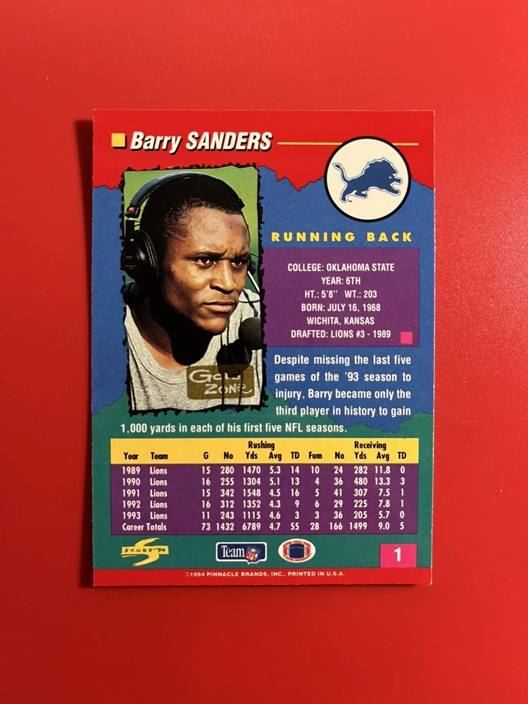 1994 Score Gold Zone SP Barry Sanders Detroit Lions #1