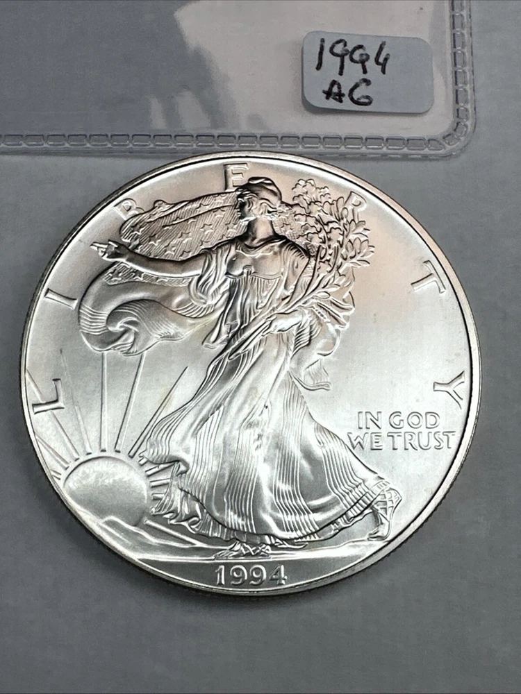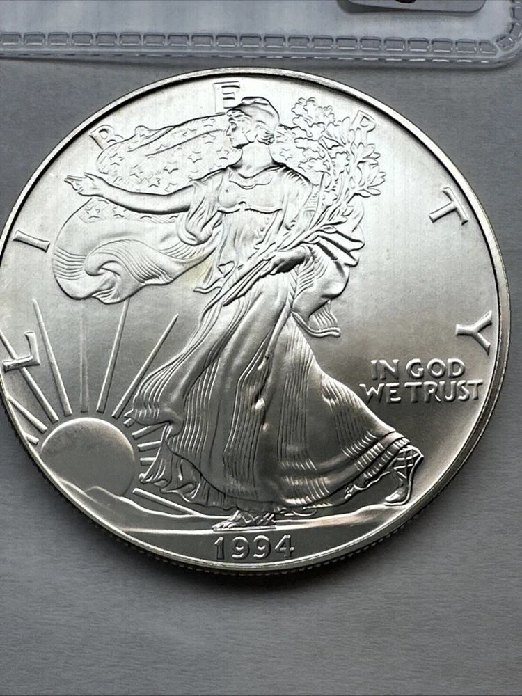 The product is a 1994 US American Silver Eagle coin, minted by the U.S. Mint. It contains 1 oz of .999 fine silver, making it a valuable addition to any collection. This particular coin is considered a key date, adding to its rarity and desirability among collectors. It is in uncirculated condition and comes uncertified.