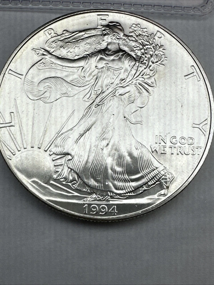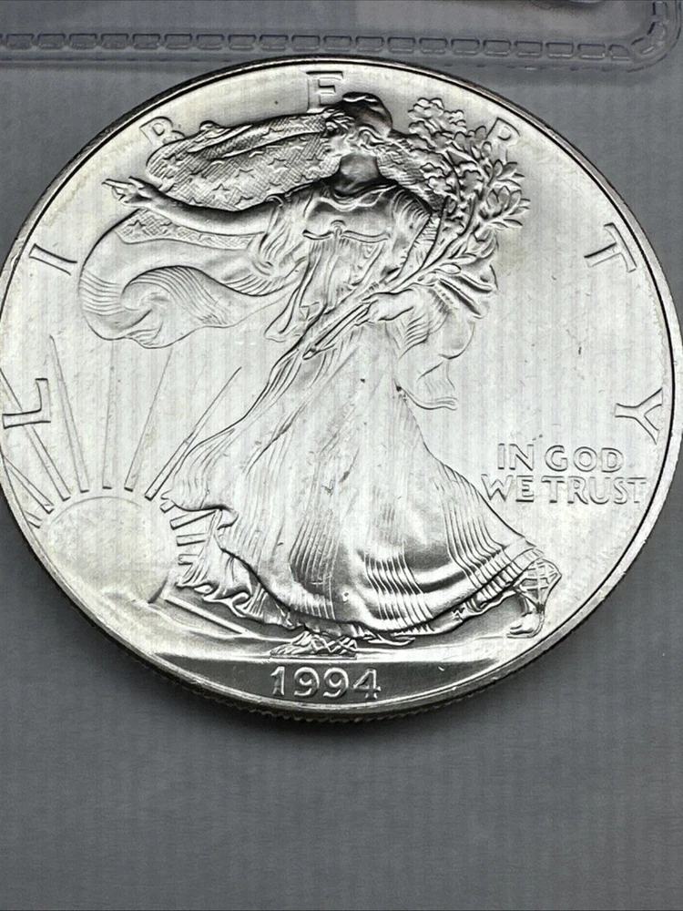 Grade: Ungraded Composition: Silver Coin: American Eagle Strike Type: Business Fineness: 0.999 Country/Region of Manufacture: United States Total Precious Metal Content: 1oz Precious Metal Content per Unit: 1 oz Brand/Mint: U.S. Mint Certification: Uncertified Year: 1994