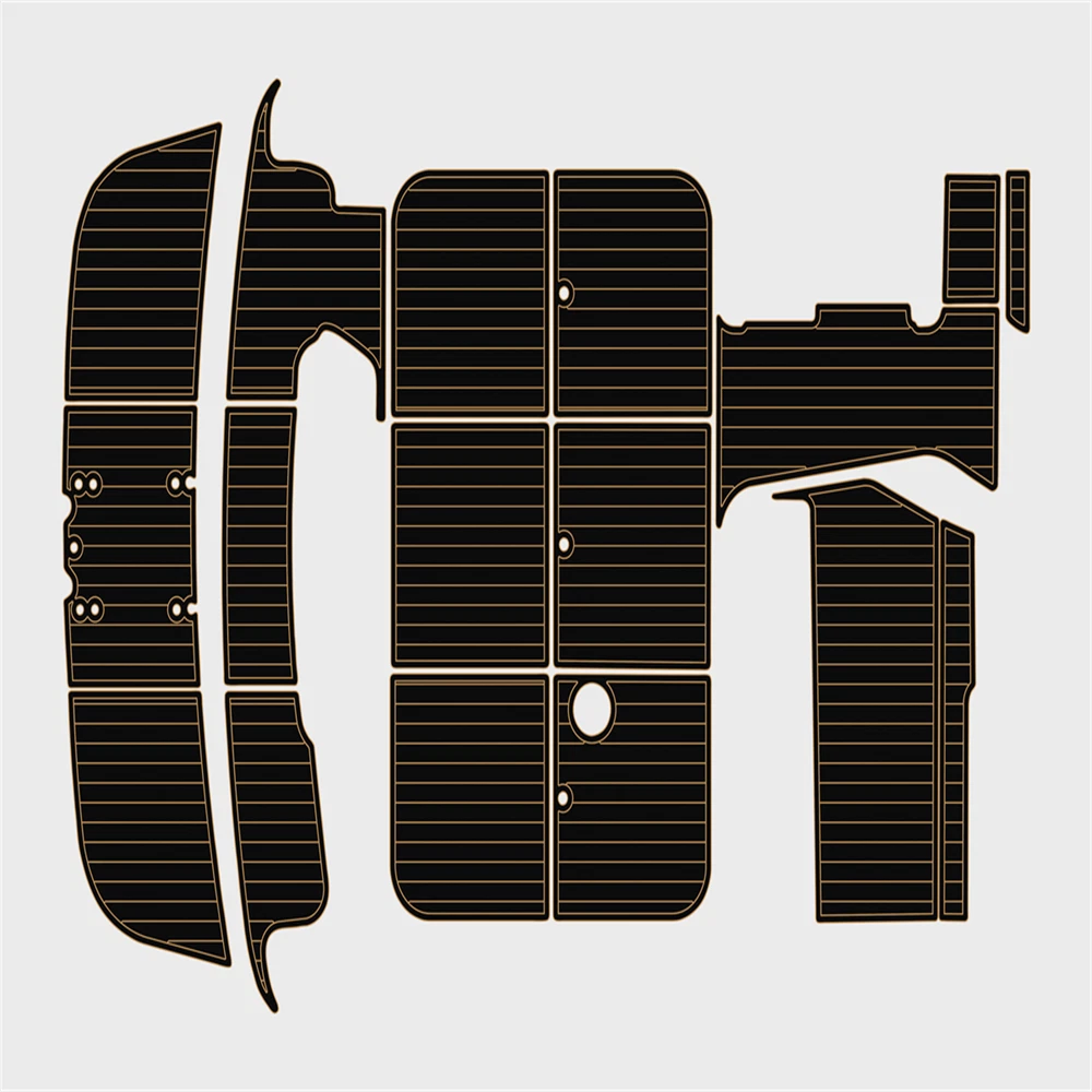 We could not add the 16 floor color options that you can choose to use to each listing because of quantity limit, when you order it, you can just leave an order note for the floor color that you want to use or you can send us a message, we will always check and confirm the floor color with you before we make the floor for you.You can just order it. Please be aware that we can only make this boat floor by the first listing drawing. Before you order it, please double check the listing drawing outline shapes with your boat to make sure they can fit your boat well. As long as the floor pad outline shape can match your boat deck layout, it should fit well.We will not be hold responsible if the listing drawing floors do not fit your boat well because you do not double check our listing drawing. We can only make sure that the floors will be cut exactly by the listing drawing. If you are not sure if the drawing can fit well with your boat, please send us some photos of your boat deck layout or a short video to show your boat deck layout from stern to bow so we can help you to confirm the fitting. The floor comes with marine backing adhesive.It is peel and stick installation.You just need to peel off the white protection paper and put it down. You do not need to buy glue to install it. We offer 1 year warranty for all our boat floors. The EVA floor is 1/4″(6mm) thick two-color pad. You can choose your colors, texture and faux teak option. Additional custom text logos can also be incorporated on EVA floor. All routed logos and beveled edges will show the bottom color selected. All EVA floors come with marine backing glue. All EVA floors listed on our online store are “made to order” and not stocked so please allow up to 2-3 weeks for delivery. EVA floor fabrication time is about 4-5 days, then it will take about 7-10 days’ time to ship and deliver to your order shipping address.After you order it, please double check your order shipping address to make sure all the shipping address, postal code, city name and contact phone number are all correct. We will ship all orders by express shipping such as DHL, FedEX, USP or EMS express. We will choose the shipping courier as we see fit. Color choices: #1 Black over Brown #2 Black over Dark Grey #3 Black over Green #4 Black over Red #5 Black over White #6 Brown over Black #7 Brown over White #8 Coffee over Black #9 Dark Grey over Black #10 Dark Grey over Grey #11 Grey over Black #12 Grey over blue #13 Grey over Purple #14 Grey over Red #15 Grey over White #16 Black over Blue When you order it, please tell us the color you want for top layer and bottom layer. Additional custom text logo fee:50 USD/ea. Before you order it, please verify floor drawing and confirm that it matches your boat and understand that this cannot be returned without a restocking fee of 30%. We can also make the custom EVA teak decking by the template drawing or full size template that you can supply to us. The listing price does not include any destination duties/taxes/custom fees/etc. that will be due when the product arrives at destination countries/regions. It is the customer’s responsibility to pay for all custom duty/taxes/custom fees if any. 1.EVA material is a high-density sponge, does not absorb moisture 2.No blackening/darkening in humid environment 3.Hardness: Around 55-50 degrees 4.Soft & Comfortable 5.Easy maintenance(Use of common cleaning agents, rinse with brush and water 6.High and low temperature resistance 7.Sound insulation and anti-vibration 8.Easy replacement,Easy installation,No additional auxiliary materials required 9.UV resistant without color fading 10.Support for customized services(Colors and patterns) Precautions before payment: 1.Please check if the boat model match your Yacht model。 2.Some ship models have different configurations with different options, please pay attention to choose the most suitable one 3.If not sure whether your ship matches the drawings, please send us photos of swim platform and cockpit, we could help to determine if it is appropriate 4..If need to verify the size, please feel free to contact us Order colors: 1.If request color not included in color cards, need to waiting the other 10-15 days. Parcels can be sent out within 20 days(Start from the moment of payment done), extend the cycle when it comes to holidays 2.The picture colors for reference only, based on actual color(Photos taken by cell phones easy to present the chromatic aberration) For design: 1.We could design drawings according to the customer’s requirements(Free of Charge) 2.We could provide design drawings for your choices 3.Support LOGO customization(50USD/ea), document is needed, format file: DXF/AI/PDF/JPJ/PNG etc. For Installation: 1.Need to use acetone or alcohol to clean the floor before installation(To remove surface wax of new ships), make sure it is dry before starting the installation. 2.Lay all EVA floors flat before installation. When confirming the location, tear off the backing adhesive from one corner and start the installation 3.Fix it when pasting, cannot move EVA floors 4.Rolling with round rollers during installation process(Need to finger press LOGO position in advance to avoid air in it). If air generated, remove it by use of a small needle to pierce the air bubble 5.No soaking within 48 hours after installation Making Templates: If no matching ship model in our sale list, pls provide template we could produce it based on your template’s requirement Reference image to create template Make a note in the package to remark contact details, name, the brand of small ship/model/year of production, we will contact you immediately We will send design drawings to you for confirmation within 5 days after template received Complete production and send package within 3-5 days after confirmation of drawings(after payment done) Package: Soft material. Rolled and packed for shipment. Outer box package Shipment Express courier: DHL FEDEX TNT UPS 