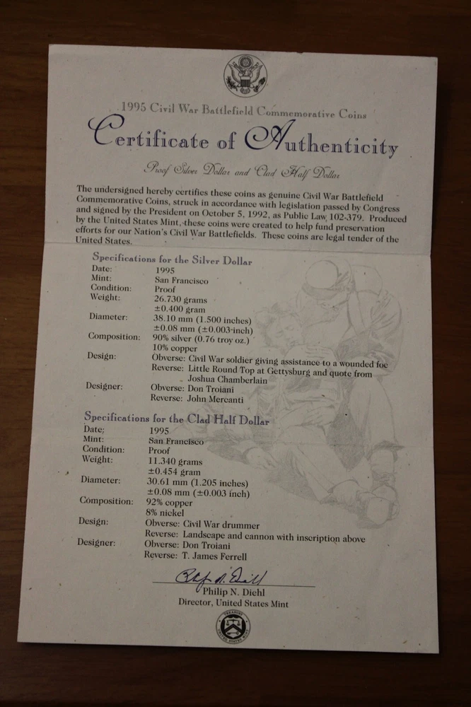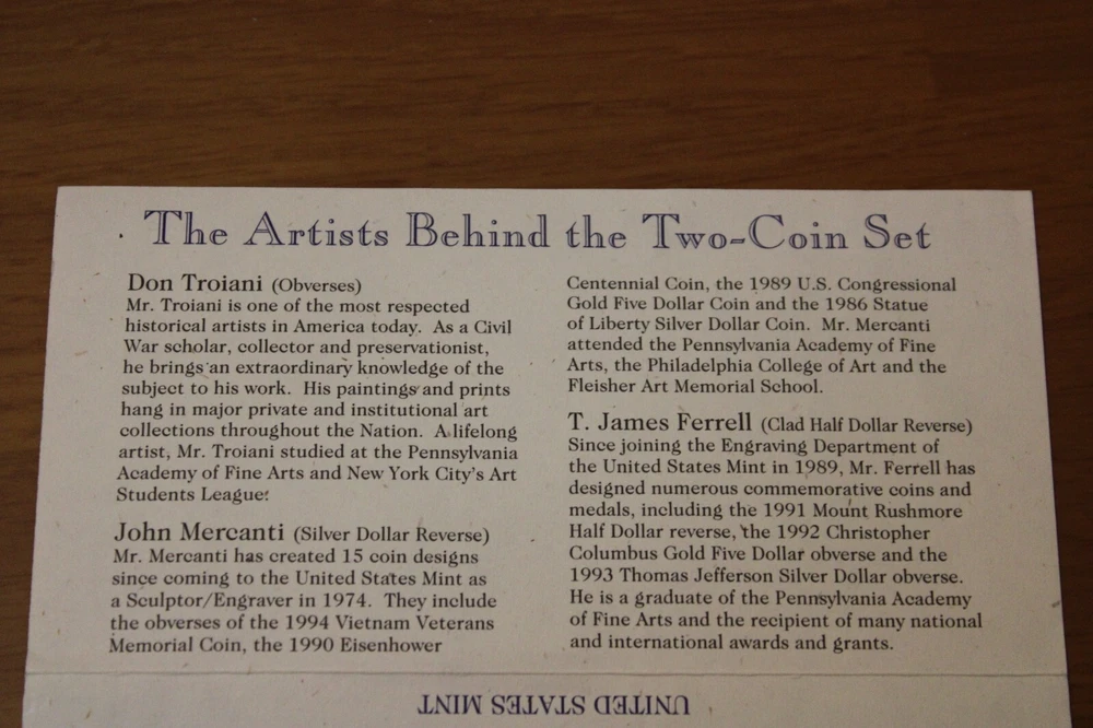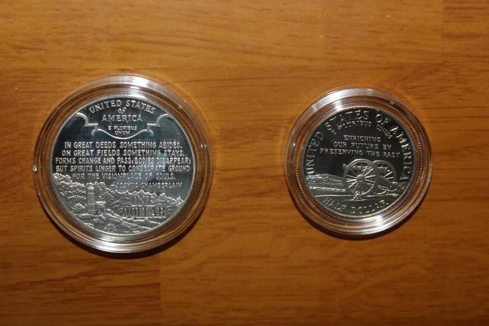 1995 Civil War Battlefield Dollar & Half Dollar 2 Coin Proof Set w/OGP and COA Selling the 1995 Civil War Battlefield Dollar & Half Dollar 2 Coin Proof Set w/OGP and COA The coins in the pictures are those being sold. Your purchase will be shipped within two business days after payment has been received. Will be shipped via USSP Ground advantage. 24cw2c-1