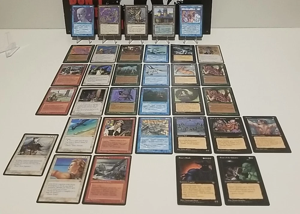 Card lot will be securely placed in a team bag and shipped in a bubble envelope. Cards are lightly played except one shown in the photos. This lot of 34 vintage Magic the Gathering trading cards from the Homelands set is a must-have for any collector. With cards in red, white, blue, black, and green, this set covers the full range of colors and includes all types of cards such as instant, summon, enchantment creature, enchantment, and artifact creature. The cards are lightly played (excellent) and made of high-quality card stock material. These cards were manufactured by Wizards of the Coast in the United States in 1995 and are in regular finish. They are perfect for Magic: The Gathering enthusiasts and collectors alike. The set comes in a standard size and is in English language. Don't miss the chance to add this rare collection to your MTG card collection.