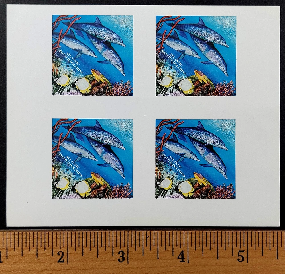 Up for bid is a sample sheet of 4, 1995 USA $10 Diamond Reef, Marine Conservation and Safety stamps that is missing the black printing. We are not certain if this is a sample handout sheet or some kind of test sheet. The sheet has no gum on the back and no perforations. The item pictured is the exact item you are bidding on. Please examine the pictures to be sure this item is right for you. The item will be shipped in a rigid fashion for secure shipping. Be sure to visit our store where you will find many other interesting items! Check out our feedback and bid with confidence! Thanks for looking!