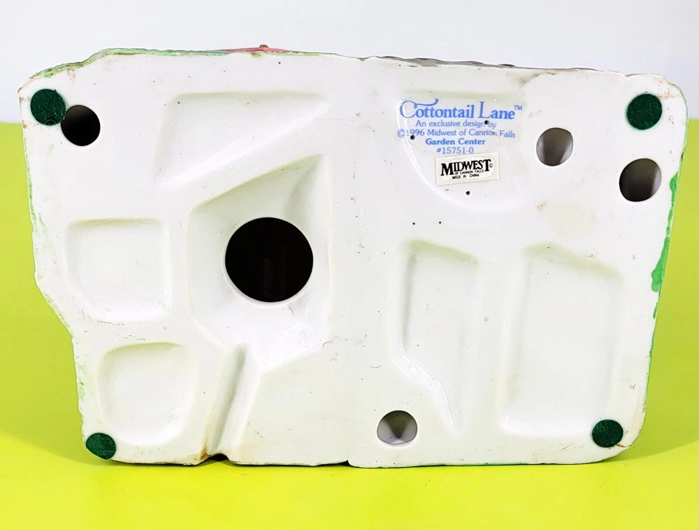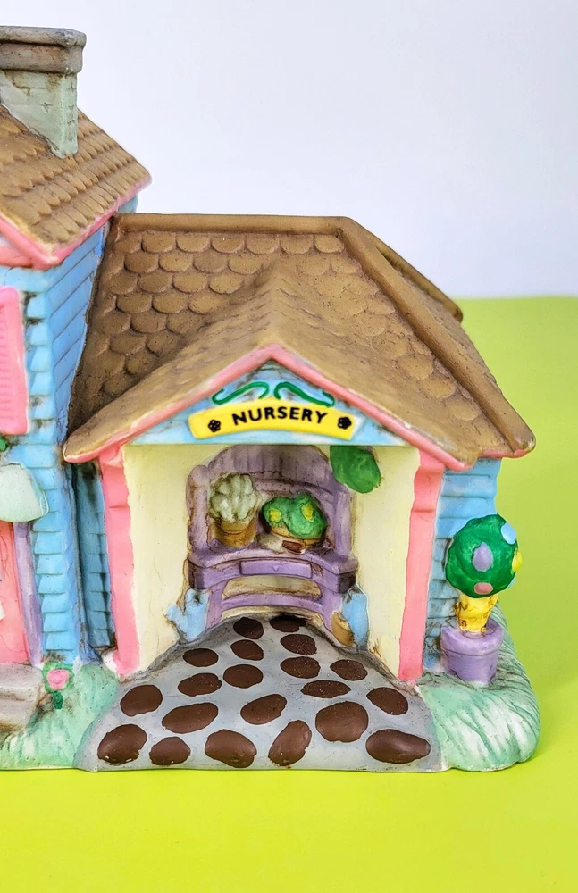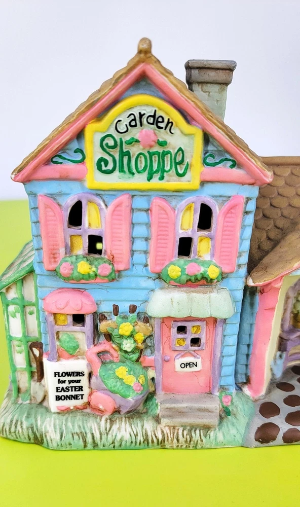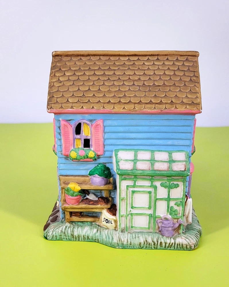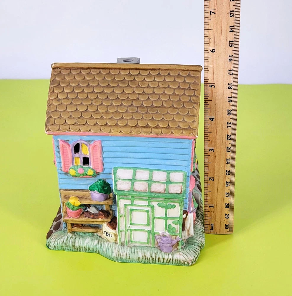 BRAND: 1996 Midwest of Cannon Falls, Cottontail Lane, Garden Shoppe, Porcelain Hand Painted. Beautiful Condition! LOC/I-3 COLORWAY: Blue, Pink, Brown, Green, White, Black, Lavender, Gray, Yellow, Tan. SIZE: Approximately 7" Long, 5" Wide, and 5.5" Tall. CONDITION: This vintage, rare colorful little Porcelain Garden Shoppe is in beautiful condition. There are no signs of cracks, chips, or crazing. Please see my photos for exact details. **** Please note the cord and light bulb are not included with the cottage. They are easily found at any hobby/craft store. Thank you for stopping by my shop today and have a wonderful afternoon!
