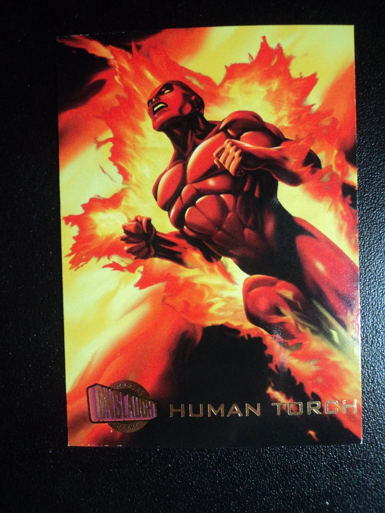PLEASE DO NOT PAY FOR MULTIPLE PURCHASES SEPARATELY ! _____________________________________________________________________________ Here's what you get: Marvel Ultra Onslaught - Fleer/SkyBox International - 1996 Base Card No. Title Artists 41 Human Torch Adam Kubert, Craig White NOTE: CARD MAY SHOW A MINOR DEGREE OF " BRICKING " - SEE PHOTOS. YOU WILL RECEIVE THE CARD IN THE PHOTOS. YOU WILL RECEIVE THE CARD IN THE PHOTOS. _____________________________________________________________________________ Card stored in a smoke-free home. Payment due within 48 hours of purchase. NOTE: IF PURCHASING FROM MORE THEN ONE LISTING, PLEASE DO NOT PAY FOR THEM SEPARATELY, RATHER REQUEST AN INVOICE FROM ME, OR AWAIT RECEIPT OF AN INVOICE FROM ME BEFORE PAYING. When possible, I will combine shipping and handling. A tracking number will be provided on all First Class and Priority packages. You must have a confirmed eBay mailing address. My goal is to provide excellent service to buyers, so I may earn your business over and over. Any questions, please feel free to e-mail me. Please check out my other listings. Happy Collecting. _____________________________________________________________________________
