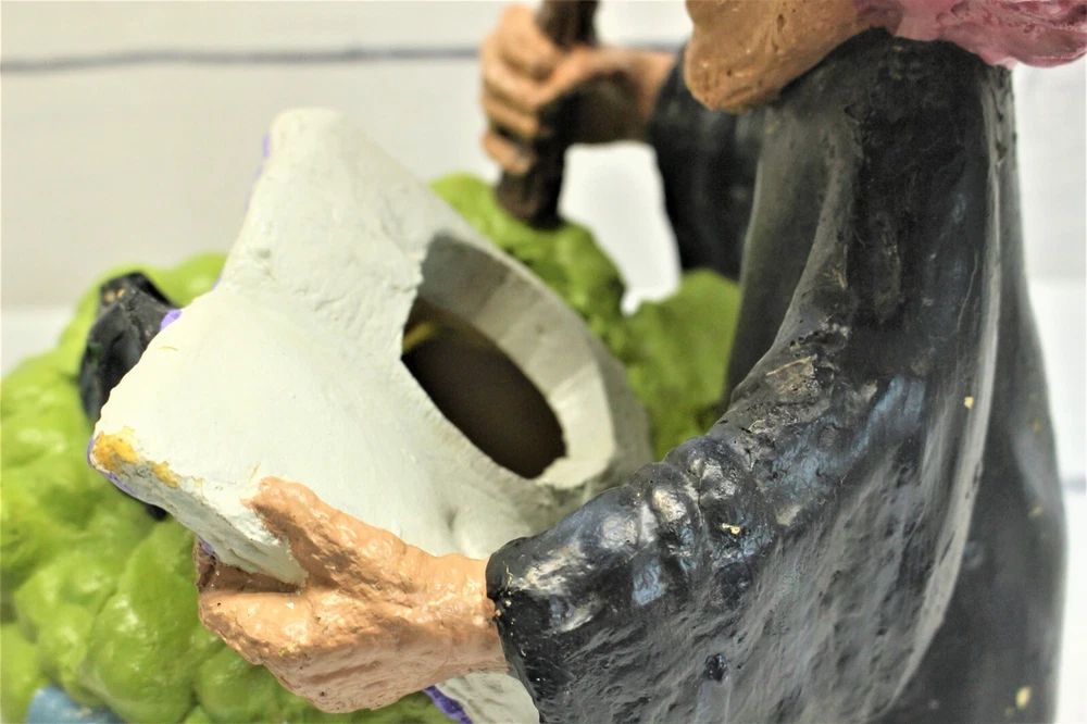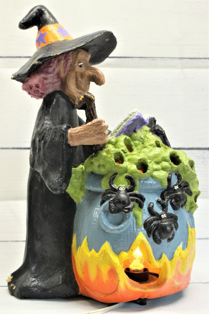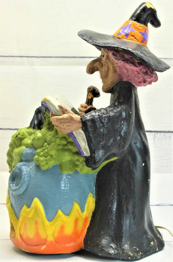 Vintage Foam Blow Mold Light Up 17" Witch & Cauldron Halloween 1996 Lustre Fame Introducing the 1996 Foam Blow Mold Witch by Lustre Fame – a captivating Halloween decor piece standing at 17" tall. This enchanting creation features a witch stirring her cauldron, illuminated to cast an eerie glow. Crafted with care, it captures the magic of the season and is sure to enchant all. Designed by Lustre Fame, known for attention to detail, this foam blow mold witch is a bewitching centerpiece. However, please note there's some paint loss and minor damage to the hat and the bottom of her dress. Despite this, the charm of the witch remains, making it a unique addition to your Halloween display. We encourage you to review all of the provided pictures carefully to assess any issues before making your purchase. Elevate your Halloween ambiance with this exquisite witch figurine. Own a piece of vintage Halloween artistry that will enchant your festivities for years to come. Our Fun and Friendly Policies Customer Happiness is Our Priority: We're all about making you smile! If your purchase doesn't put a grin on your face, let us know. Your satisfaction is our mission, and we're here to make it happen. Fast Shipping, Happy Waiting: We're like a lightning bolt in the shipping world! Most orders zoom out within 1-2 business days of payment. Get ready to track your parcel's speedy journey to you. Return Cheers: Need to send something back? No worries! We're here to help with the return magic. Just remember, like a friendly handshake, you're responsible for the return shipping. Spreading Positivity: Your support means the world to us! Join our community of good vibes. Share your thoughts, leave feedback, and be part of our journey to keep the positivity flowing. Talk to Us, We're All Ears: Got questions, ideas, or just want to chat? We're all ears and ready to connect. Reach out through eBay's messaging, and expect a friendly response from our side! Your happiness is our driving force. Thanks for choosing us and letting us be part of your good times!