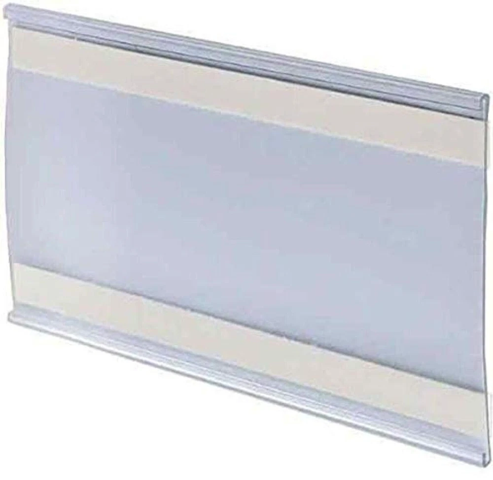 This clear plastic nameplate measures 6-Inch Width x 4-Inch Height and is made of extruded plastic. The Nameplate has adhesive tape on the back for hanging on practically any surface. Just slide your graphic or name into the grooves and display for all to see. Sold in packs of 10. Made from clear plastic Comes with adhesive double sided tape Sold in packs of 10 Great for offices, schools, business and much more