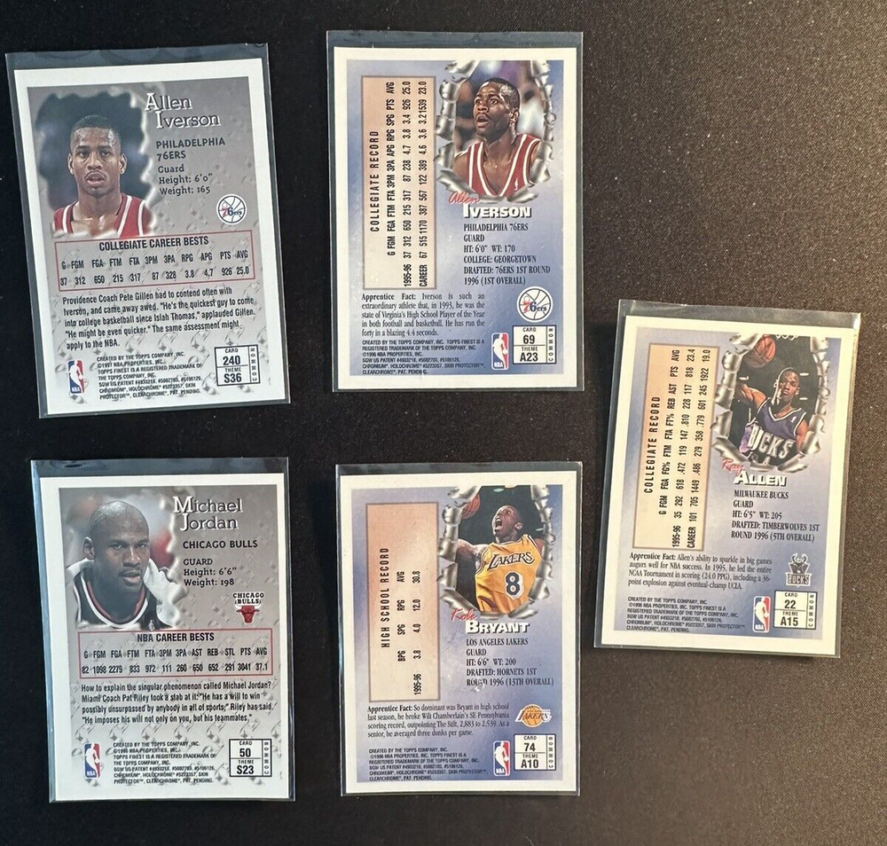 complete 200 card finest bronze series 1 &2 with kobe rc 2- iverson rc ray allen rc jordan marbury rc nash rc includes #136 laettner for card #7 all cards have protective peel