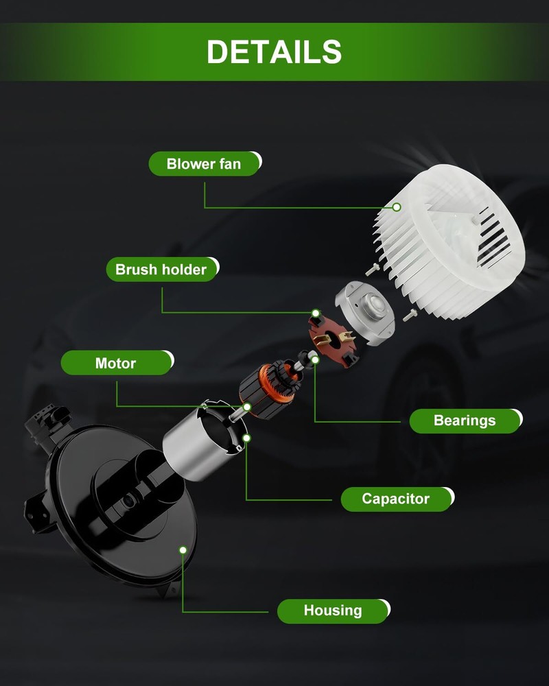 【High Quality】A ABIGAIL blower motor is made of high quality material which is reliability, and durability. If your AC or Heater does not produce or circulate any heated or cooled air then you may have a problem with your blower motor. 【OEM Fit 】This Blower Motor will meet or exceed OEM standards, it is a direct replacement though it is NOT a genuine Jeep part. Each resistor is 100% tested before shipping. Advise to replace your blower motor relay/resistor with a new one when you replace your blower motor. 【Application】This AC Heater Blower Motor fits for 1997 1998 1999 2000 2001 Jeep Cherokee, 1997 1998 1999 2000 2001 Jeep Wrangler. 【Interchange Part Number】Replaces 700095, 4886150AA. Original equipment comparable assembly compatible with motor and fan ( wheel ) to save installation time AC Blower Motor with Fan for for Jeep Wrangler Jeep Cherokee 1997 1998 1999-2001 Compatibility: 1997-2001 Jeep Wrangler 1997-2001 Jeep Cherokee Note: DON'T FIT Jeep Grand Cherokee, ONLY FIT Jeep Cherokee OEM Part Numbers: 700095, 4886150AA, 75712, PM6002, 3010234, 5120, CH3126112 Product Features: Easy to install, oem design ensure perfectly to match functions and appearance of your factory original ac heater blower motor. Material of rotor punching plate is silicon steel sheet, enameled wire is used copper enameled wire, ensuring a longer operation life. Need to replace blower motor when your vehicle is suffering from these problems: Weak or no airflow from air vents Blower motor only works at certain speed Strange sounds coming from blower motor fan Hot/burning smell coming from air vents Choose the Best Blower Motor for Your Vehicle HVAC System Product Details