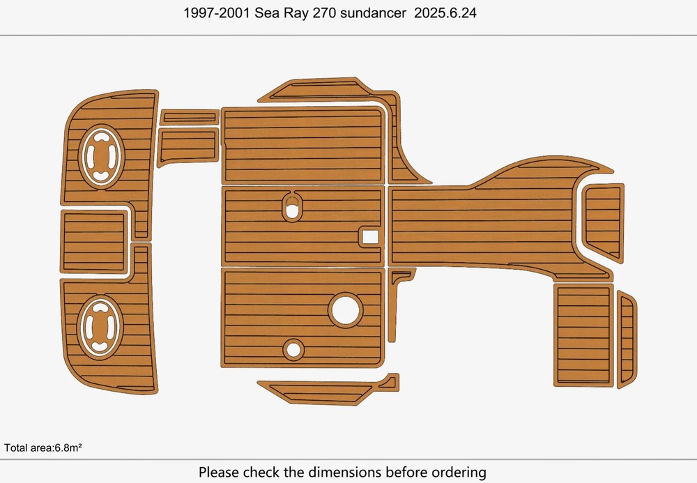 We could not add the 16 floor color options that you can choose to use to each listing because of quantity limit, when you order it, you can just leave an order note for the floor color that you want to use or you can send us a message, we will always check and confirm the floor color with you before we make the floor for you.You can just order it. Please be aware that we can only make this boat floor by the first listing drawing. Before you order it, please double check the listing drawing outline shapes with your boat to make sure they can fit your boat well. As long as the floor pad outline shape can match your boat deck layout, it should fit well.We will not be hold responsible if the listing drawing floors do not fit your boat well because you do not double check our listing drawing. We can only make sure that the floors will be cut exactly by the listing drawing. If you are not sure if the drawing can fit well with your boat, please send us some photos of your boat deck layout or a short video to show your boat deck layout from stern to bow so we can help you to confirm the fitting. The floor comes with marine backing adhesive.It is peel and stick installation.You just need to peel off the white protection paper and put it down. You do not need to buy glue to install it. We offer 1 year warranty for all our boat floors. The EVA floor is 1/4″(6mm) thick two-color pad. You can choose your colors, texture and faux teak option. Additional custom text logos can also be incorporated on EVA floor. All routed logos and beveled edges will show the bottom color selected. All EVA floors come with marine backing glue. All EVA floors listed on our online store are “made to order” and not stocked so please allow up to 2-3 weeks for delivery. EVA floor fabrication time is about 4-5 days, then it will take about 7-10 days’ time to ship and deliver to your order shipping address.After you order it, please double check your order shipping address to make sure all the shipping address, postal code, city name and contact phone number are all correct. We will ship all orders by express shipping such as DHL, FedEX, USP or EMS express. We will choose the shipping courier as we see fit. Color choices: #1 Black over Brown #2 Black over Dark Grey #3 Black over Green #4 Black over Red #5 Black over White #6 Brown over Black #7 Brown over White #8 Coffee over Black #9 Dark Grey over Black #10 Dark Grey over Grey #11 Grey over Black #12 Grey over blue #13 Grey over Purple #14 Grey over Red #15 Grey over White #16 Black over Blue When you order it, please tell us the color you want for top layer and bottom layer. Additional custom text logo fee:50 USD/ea. Before you order it, please verify floor drawing and confirm that it matches your boat and understand that this cannot be returned without a restocking fee of 30%. We can also make the custom EVA teak decking by the template drawing or full size template that you can supply to us. The listing price does not include any destination duties/taxes/custom fees/etc. that will be due when the product arrives at destination countries/regions. It is the customer’s responsibility to pay for all custom duty/taxes/custom fees if any. 1.EVA material is a high-density sponge, does not absorb moisture 2.No blackening/darkening in humid environment 3.Hardness: Around 55-50 degrees 4.Soft & Comfortable 5.Easy maintenance(Use of common cleaning agents, rinse with brush and water 6.High and low temperature resistance 7.Sound insulation and anti-vibration 8.Easy replacement,Easy installation,No additional auxiliary materials required 9.UV resistant without color fading 10.Support for customized services(Colors and patterns) Precautions before payment: 1.Please check if the boat model match your Yacht model。 2.Some ship models have different configurations with different options, please pay attention to choose the most suitable one 3.If not sure whether your ship matches the drawings, please send us photos of swim platform and cockpit, we could help to determine if it is appropriate 4..If need to verify the size, please feel free to contact us Order colors: 1.If request color not included in color cards, need to waiting the other 10-15 days. Parcels can be sent out within 20 days(Start from the moment of payment done), extend the cycle when it comes to holidays 2.The picture colors for reference only, based on actual color(Photos taken by cell phones easy to present the chromatic aberration) For design: 1.We could design drawings according to the customer’s requirements(Free of Charge) 2.We could provide design drawings for your choices 3.Support LOGO customization(50USD/ea), document is needed, format file: DXF/AI/PDF/JPJ/PNG etc. For Installation: 1.Need to use acetone or alcohol to clean the floor before installation(To remove surface wax of new ships), make sure it is dry before starting the installation. 2.Lay all EVA floors flat before installation. When confirming the location, tear off the backing adhesive from one corner and start the installation 3.Fix it when pasting, cannot move EVA floors 4.Rolling with round rollers during installation process(Need to finger press LOGO position in advance to avoid air in it). If air generated, remove it by use of a small needle to pierce the air bubble 5.No soaking within 48 hours after installation Making Templates: If no matching ship model in our sale list, pls provide template we could produce it based on your template’s requirement Reference image to create template Make a note in the package to remark contact details, name, the brand of small ship/model/year of production, we will contact you immediately We will send design drawings to you for confirmation within 5 days after template received Complete production and send package within 3-5 days after confirmation of drawings(after payment done) Package: Soft material. Rolled and packed for shipment. Outer box package Shipment Express courier: DHL FEDEX TNT UPS 