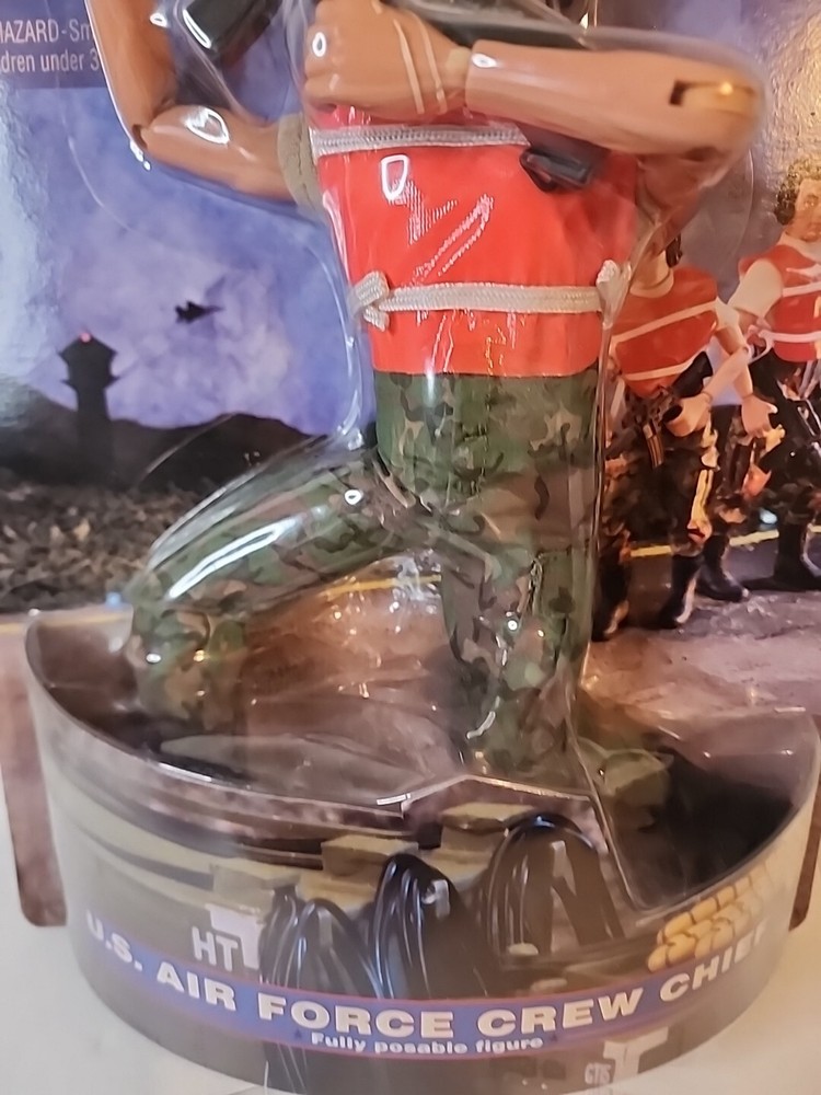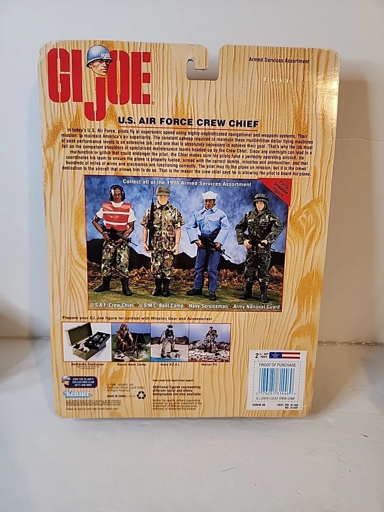 This G.I. Joe action figure is a must-have for collectors and fans of the franchise. The U.S. Air Force Crew Chief is depicted with an assault rifle and comes in its original packaging, unopened and in its original state. The figure is made of plastic and stands at a height of 12 inches, with a scale of 1:6. The vintage Kenner figure was manufactured in 1998 and belongs to the G.I. Joe series. The character is part of the Military & Adventure theme and is an original licensed reproduction. This action figure is perfect for those who love collecting vintage toys and action figures.
